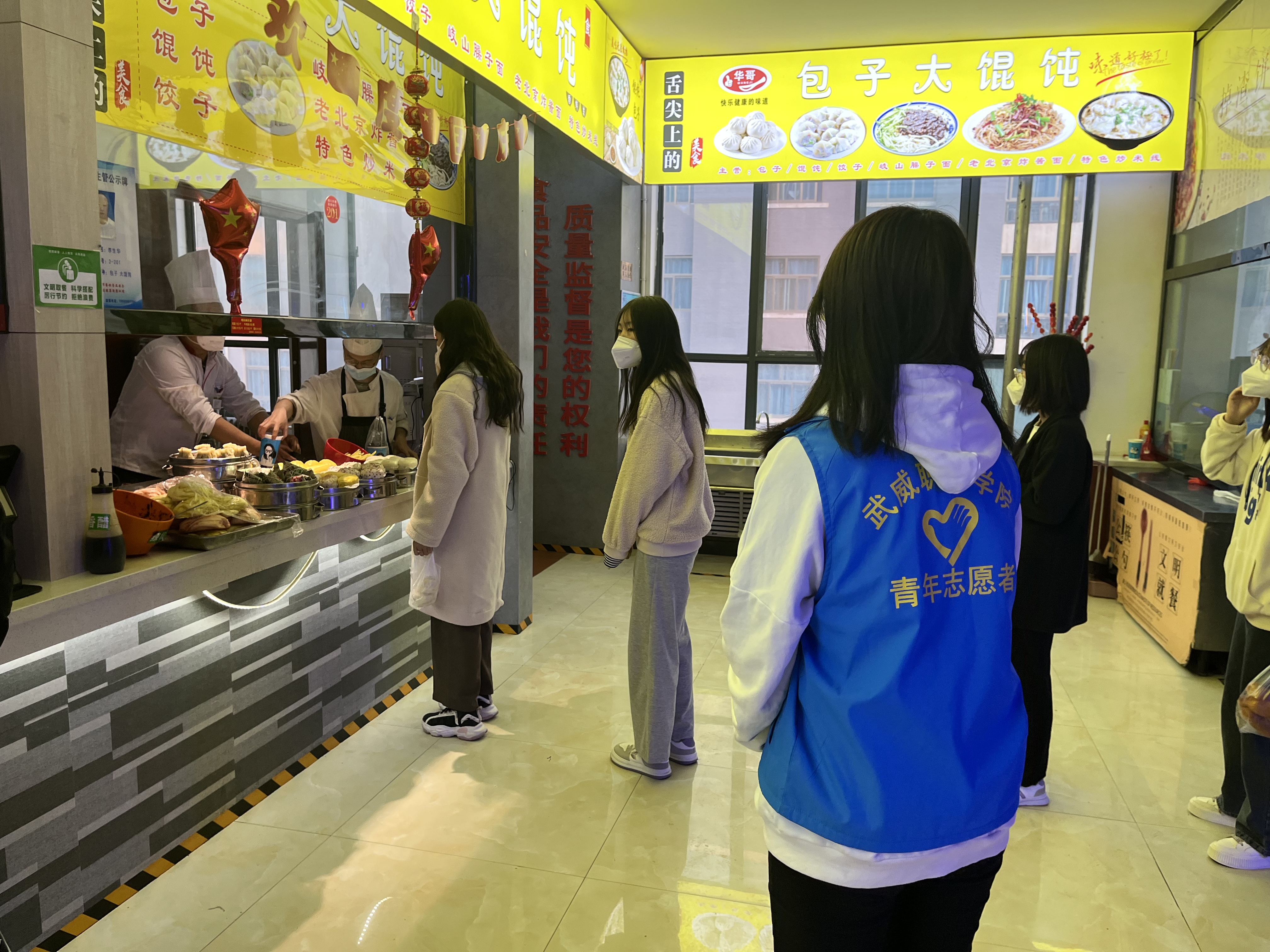 “您好,請(qǐng)測(cè)量體溫、掃場(chǎng)所碼。”“請(qǐng)佩戴好口罩,有序排隊(duì)……”校學(xué)生會(huì)的陶玲在學(xué)校食堂門(mén)口值班時(shí)不停地提醒著進(jìn)出打飯的同學(xué)們,這也是她參加校園疫情防控以來(lái)每天講得最多的話。自10月13日涼州區(qū)實(shí)施臨時(shí)管控以來(lái),學(xué)校各學(xué)生組織聞令而動(dòng),身穿“藍(lán)馬甲”積極投身校園疫情防控一線,用奉獻(xiàn)溫暖了這個(gè)秋天。