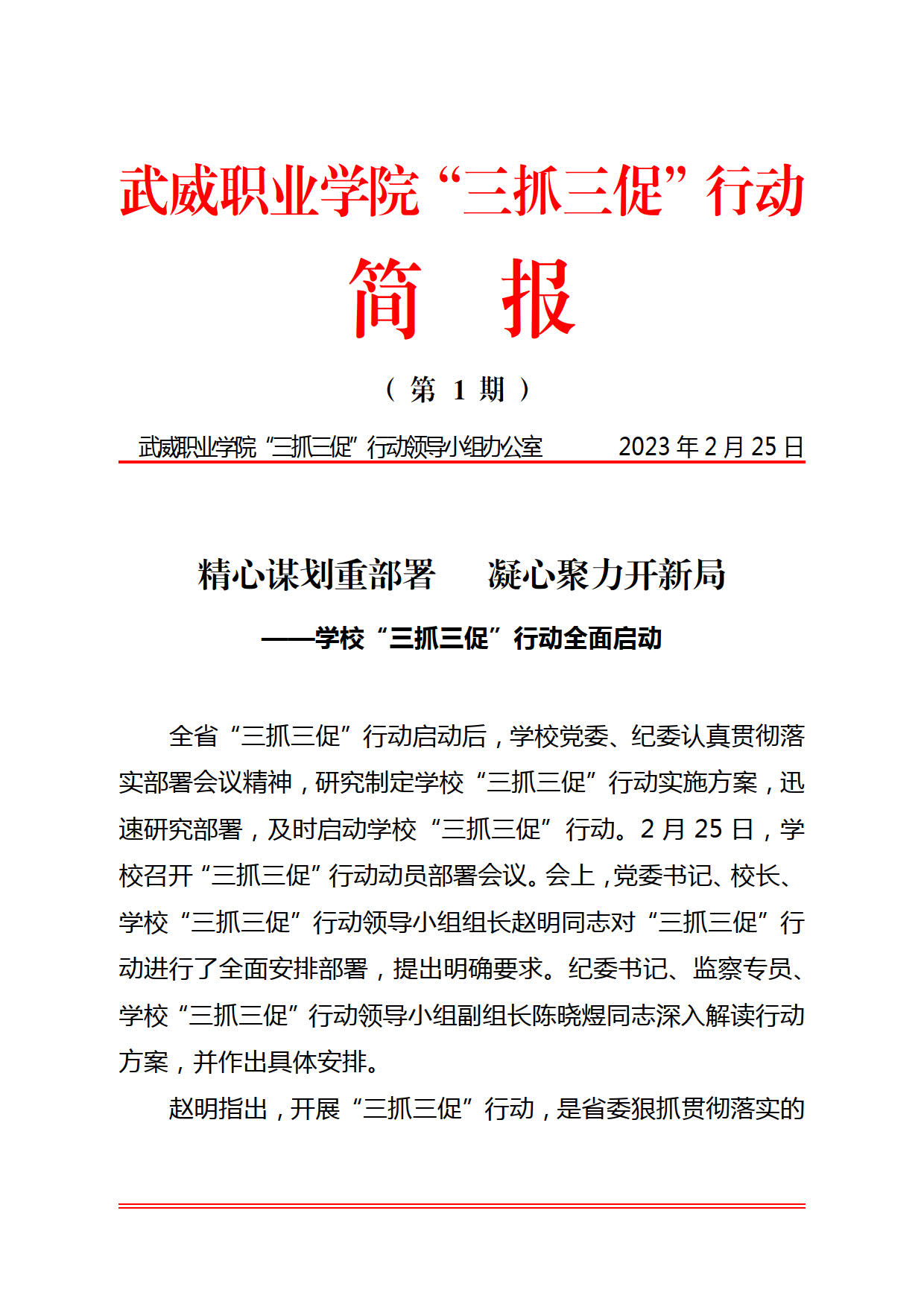 武威職業(yè)學(xué)院“三抓三促”行動(dòng)簡(jiǎn)報(bào)第1期