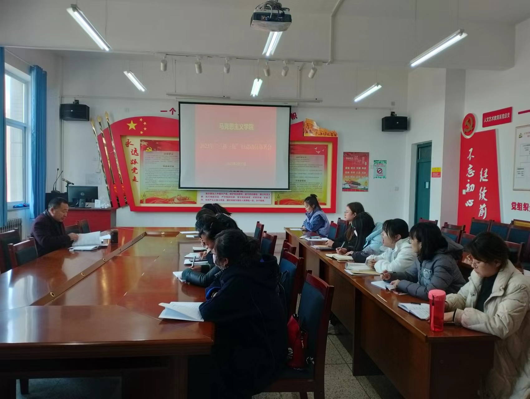 會(huì)議傳達(dá)學(xué)習(xí)了《武威職業(yè)學(xué)院“抓學(xué)習(xí)促提升抓執(zhí)行促落實(shí)抓效能促發(fā)展”行動(dòng)實(shí)施方案》文件精神,全面梳理了馬克思主義學(xué)院在“三抓三促”行動(dòng)中存在的具體問題,并結(jié)合學(xué)院實(shí)際,對(duì)2023年重點(diǎn)工作進(jìn)行了安排部署。
