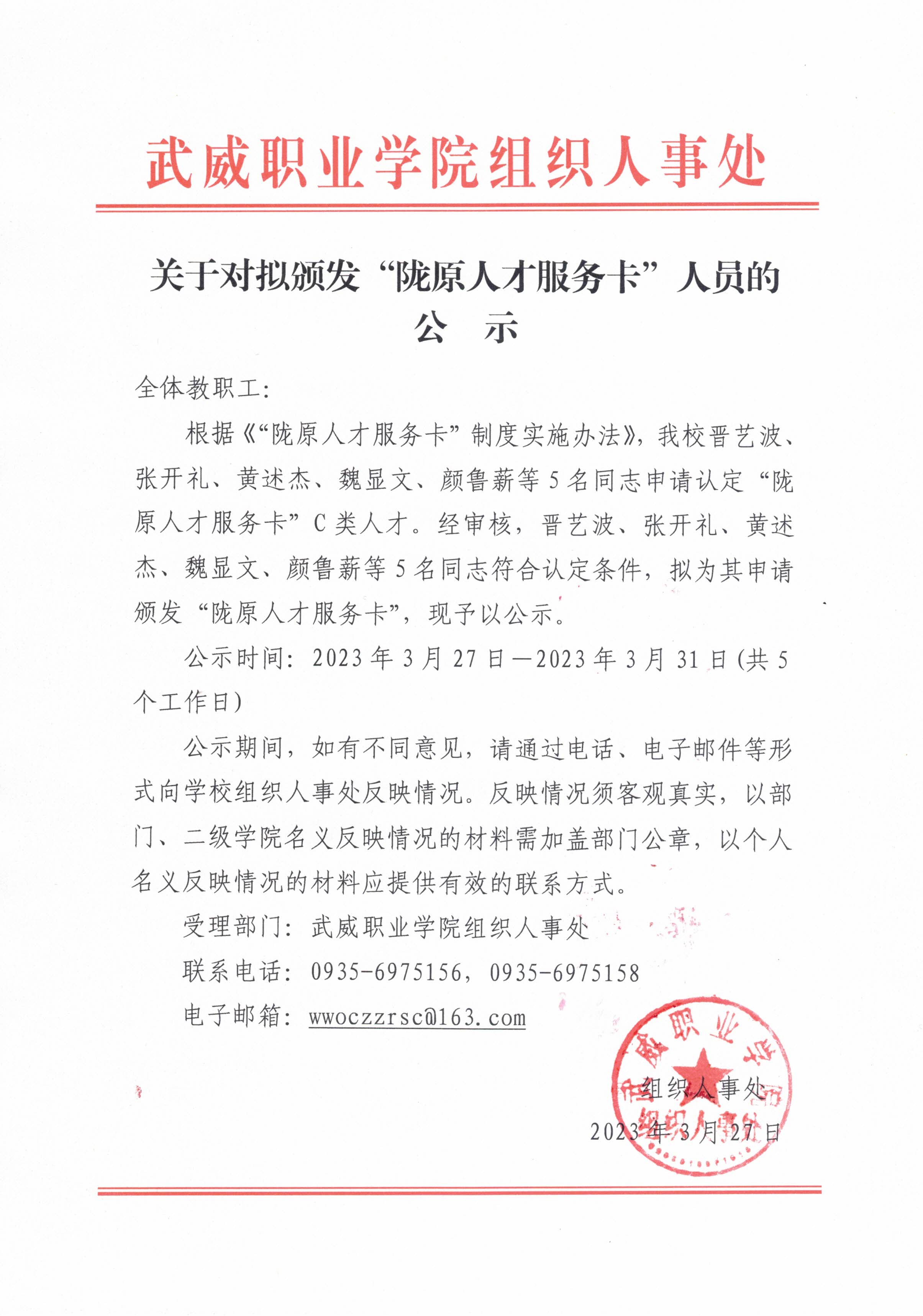 關(guān)于對(duì)擬頒發(fā)“隴原人才服務(wù)卡”人員的公示