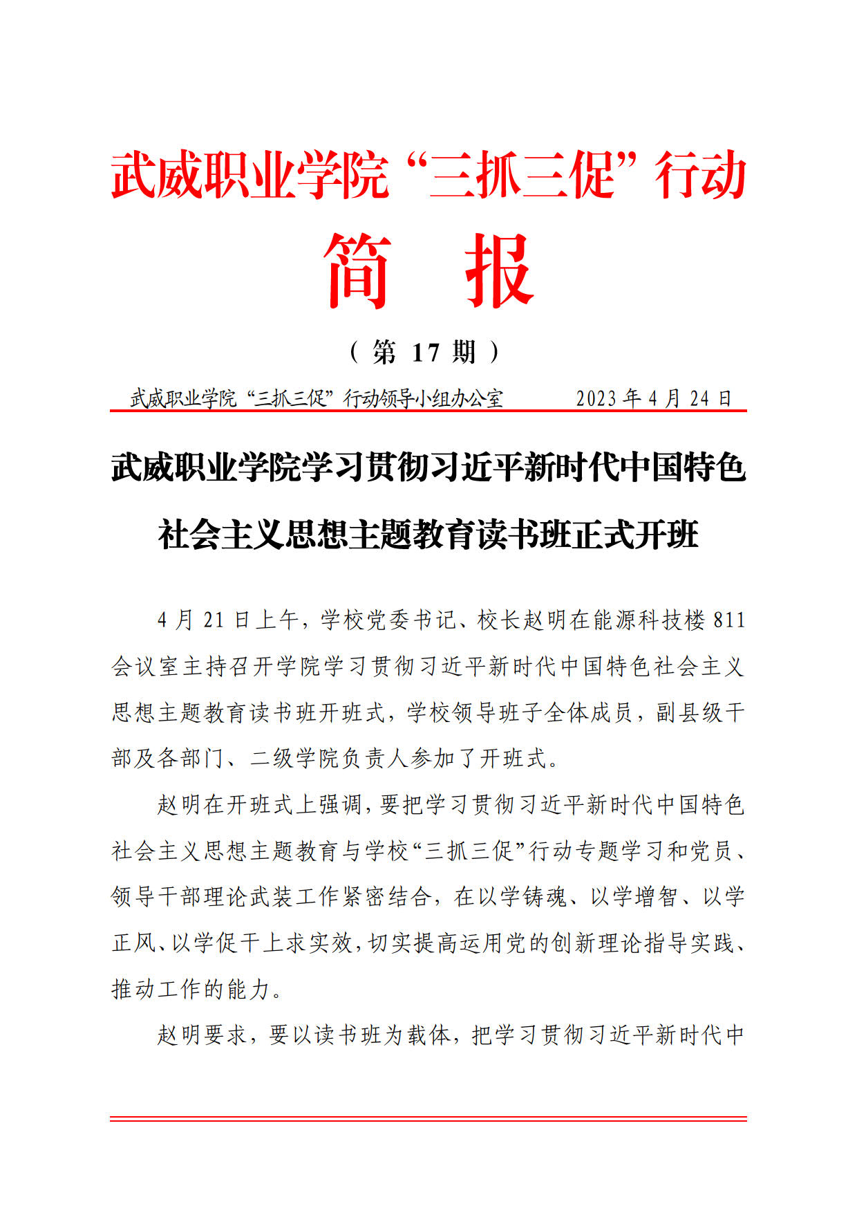 簡報第17期:學習貫徹習近平新時代中國特色社會主義 思想主題教育讀書班正式開班