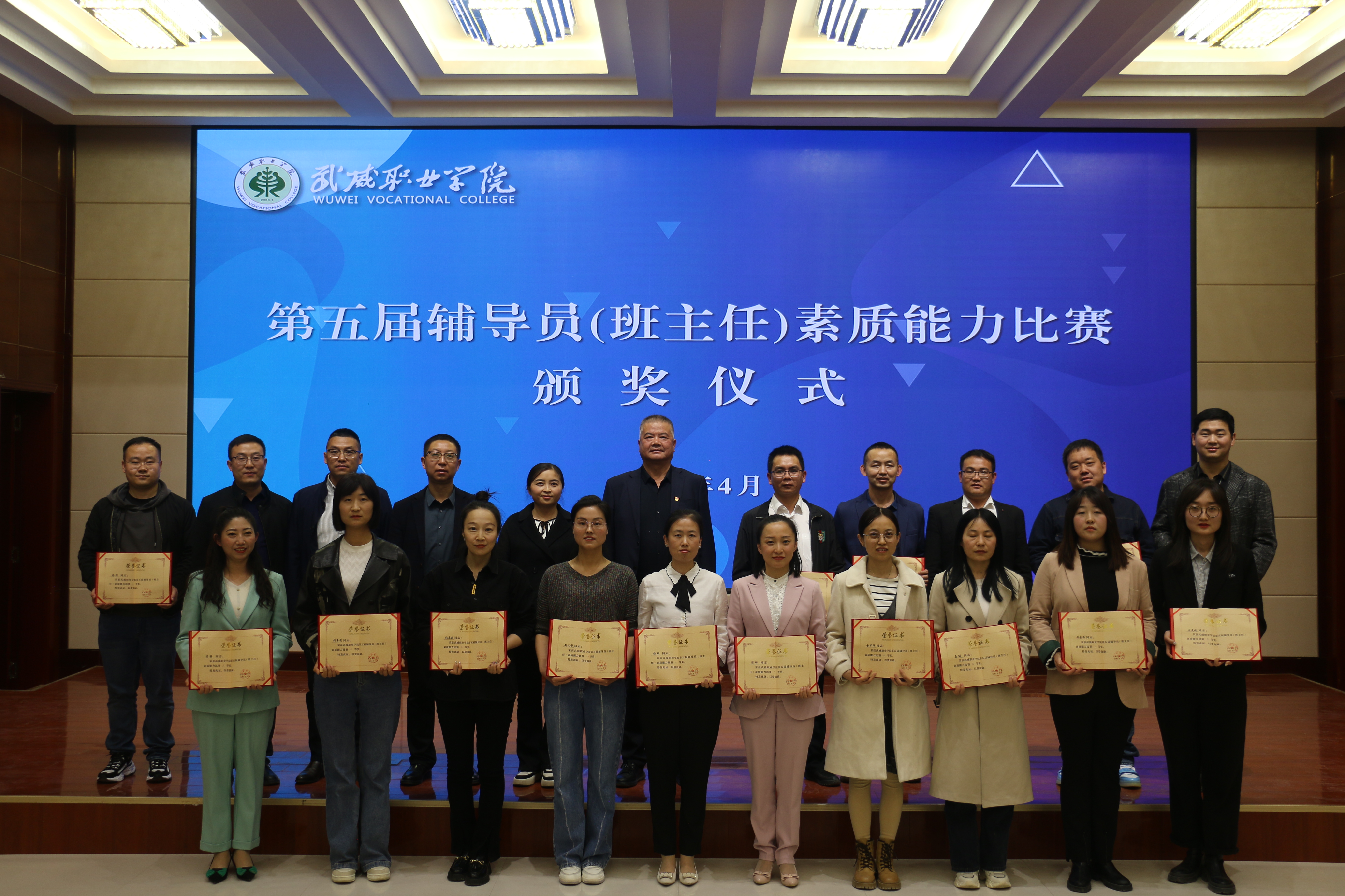 4月18日至20日,武威職業(yè)學(xué)院第五屆輔導(dǎo)員(班主任)素質(zhì)能力比賽在菁英廳成功舉辦。決賽現(xiàn)場,學(xué)院黨委委員、副校長王守云出席活動并為獲獎選手頒獎。