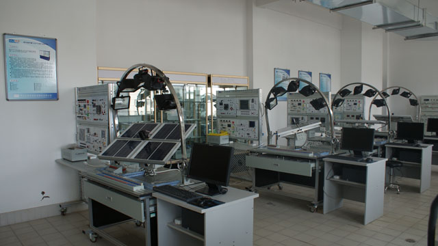 光伏光熱實(shí)訓(xùn)室建立于2013年4月初,主要面向光伏發(fā)電及應(yīng)用技術(shù)、太陽(yáng)能光熱技術(shù)專業(yè),是能源工程系的專業(yè)實(shí)訓(xùn)室之一。室內(nèi)配有光伏產(chǎn)業(yè)鏈陳列柜、太陽(yáng)能輻射觀測(cè)系統(tǒng)、太陽(yáng)能氣象觀測(cè)系統(tǒng)各1套,太陽(yáng)能熱水器實(shí)訓(xùn)裝置2套,太陽(yáng)能光伏發(fā)電系統(tǒng)應(yīng)用平臺(tái)4套,太陽(yáng)能光伏發(fā)電系統(tǒng)實(shí)訓(xùn)裝置8套。該實(shí)訓(xùn)室主要服務(wù)于我系《光伏發(fā)電技術(shù)分析與應(yīng)用》、《太陽(yáng)能資源利用與開(kāi)發(fā)》、《光伏發(fā)電系統(tǒng)集成與施工》等專業(yè)核心課程。