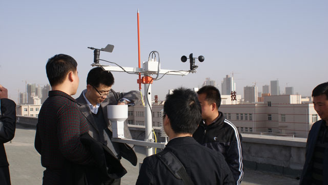 本次培訓(xùn)旨在提高教師對新進(jìn)實(shí)驗(yàn)設(shè)備的熟悉程度,解答實(shí)驗(yàn)過程存在的問題。設(shè)備廠家北京中鼎科技有限公司的技術(shù)人員為各位參加培訓(xùn)的老師進(jìn)行了講解和介紹。此次新進(jìn)的實(shí)驗(yàn)設(shè)施包括太陽能光伏發(fā)電應(yīng)用平臺(tái)、太陽能光熱集熱器、氣象監(jiān)控站、太陽輻射能測量平臺(tái)、集熱管性能檢測平臺(tái)等專業(yè)相關(guān)的實(shí)驗(yàn)設(shè)備。廠家的技術(shù)人員演示了太陽能光伏發(fā)電設(shè)備在太陽能蓄電池、太陽能離網(wǎng)并網(wǎng)發(fā)電方面的應(yīng)用,并展示了氣象監(jiān)控站實(shí)時(shí)監(jiān)控的氣象數(shù)據(jù)。老師們在技術(shù)人員的帶領(lǐng)下來到了氣象監(jiān)控設(shè)備及太陽能輻射能測量設(shè)備安放的平臺(tái),近距離的觀察了監(jiān)控設(shè)備的安裝和運(yùn)行,并詢問了監(jiān)控設(shè)備的使用和維護(hù)的注意事項(xiàng)。