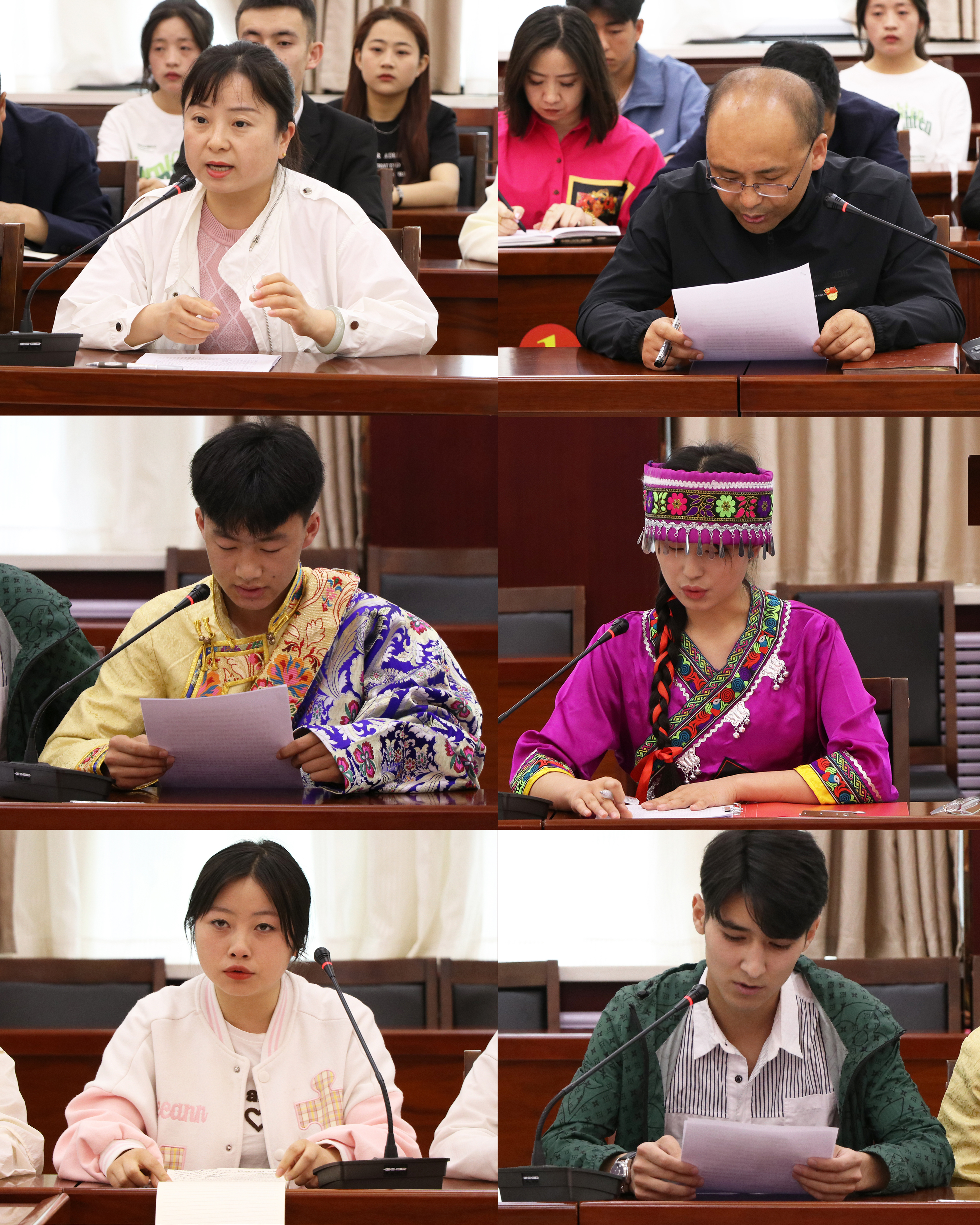 來(lái)自漢族、藏族、回族、維吾爾族、土族、苗族、東鄉(xiāng)族、保安族、裕固族、滿族等民族的10名師生代表在座談會(huì)上進(jìn)行了交流發(fā)言,分別介紹了本民族的風(fēng)土人情、傳統(tǒng)文化、生活習(xí)慣、成長(zhǎng)經(jīng)歷和在學(xué)校的學(xué)習(xí)工作生活情況。大家紛紛表示,中華民族一家親,要始終牢記黨和國(guó)家的關(guān)心關(guān)懷,鑄牢中華民族共同體意識(shí),珍惜大學(xué)時(shí)光,扎實(shí)學(xué)好知識(shí),練就過(guò)硬本領(lǐng),將來(lái)積極投身家鄉(xiāng)建設(shè),把對(duì)黨和國(guó)家的感恩之情轉(zhuǎn)化為努力報(bào)國(guó)之行,為促進(jìn)各民族共同團(tuán)結(jié)進(jìn)步,共同繁榮發(fā)展。