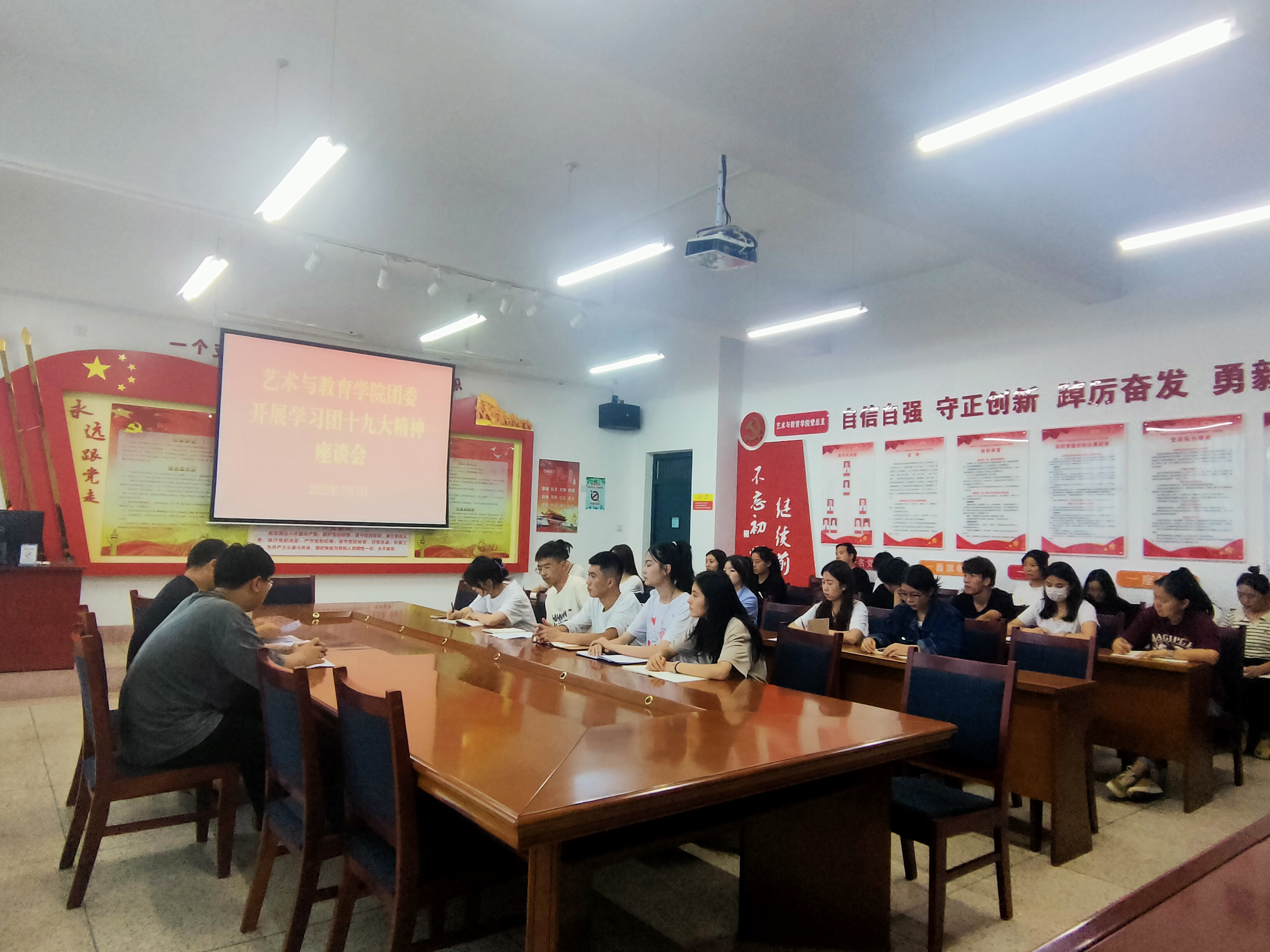 2023年7月3日晚,院團(tuán)委在勵(lì)勤樓209召開了學(xué)習(xí)團(tuán)十九大精神座談會(huì)。會(huì)議由團(tuán)委書記唐鑫基主持,全體團(tuán)支部書記參加了會(huì)議。
