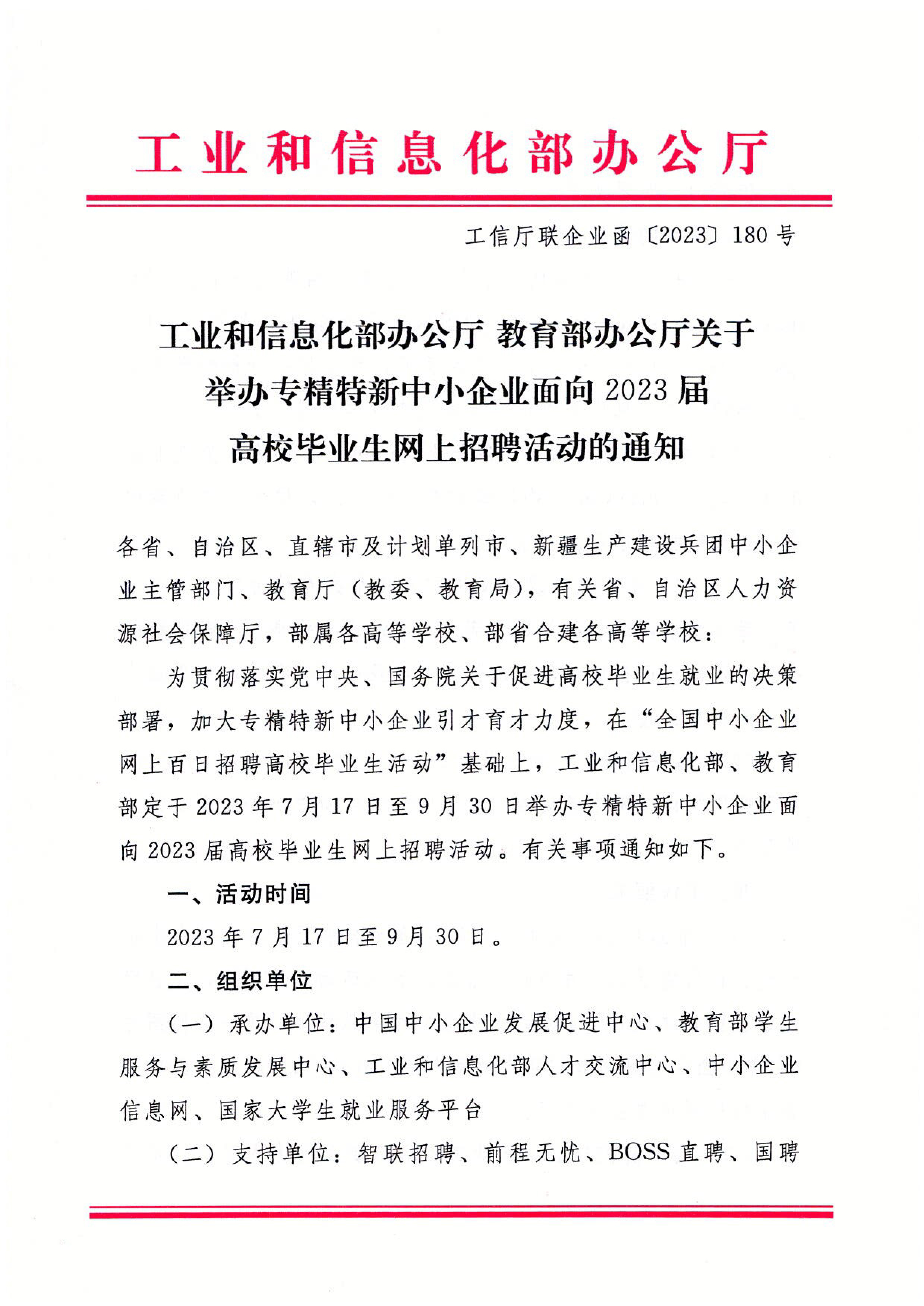 關于舉辦專精特新中小企業(yè)面向2023屆高校畢業(yè)生網(wǎng)上招聘活動的通知