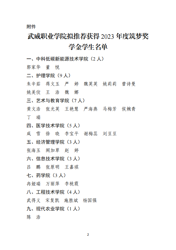 武威職業(yè)學(xué)院關(guān)于2023年度筑夢獎(jiǎng)學(xué)金評選結(jié)果的公示