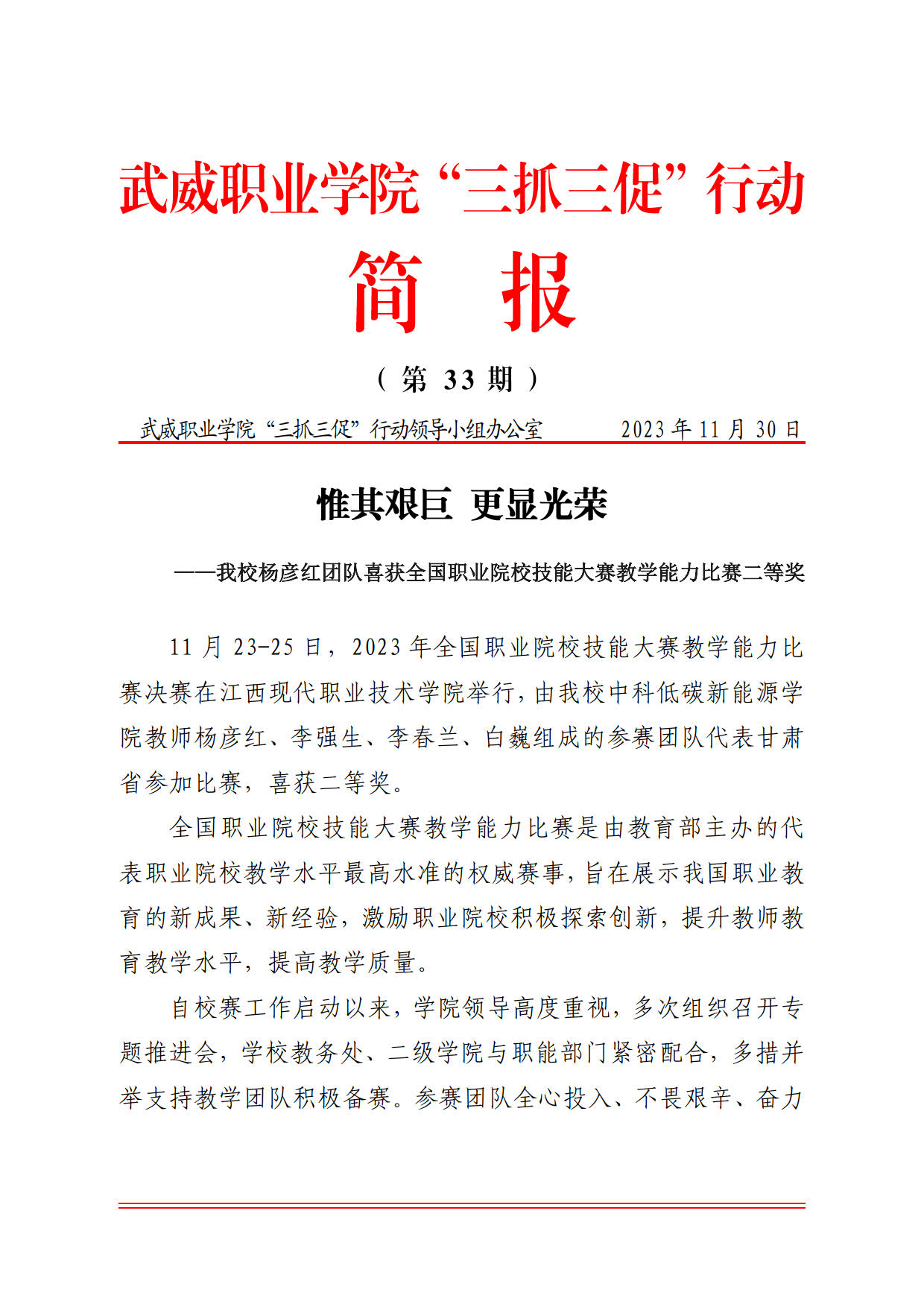 簡報(bào)第33期:惟其艱巨 更顯光榮