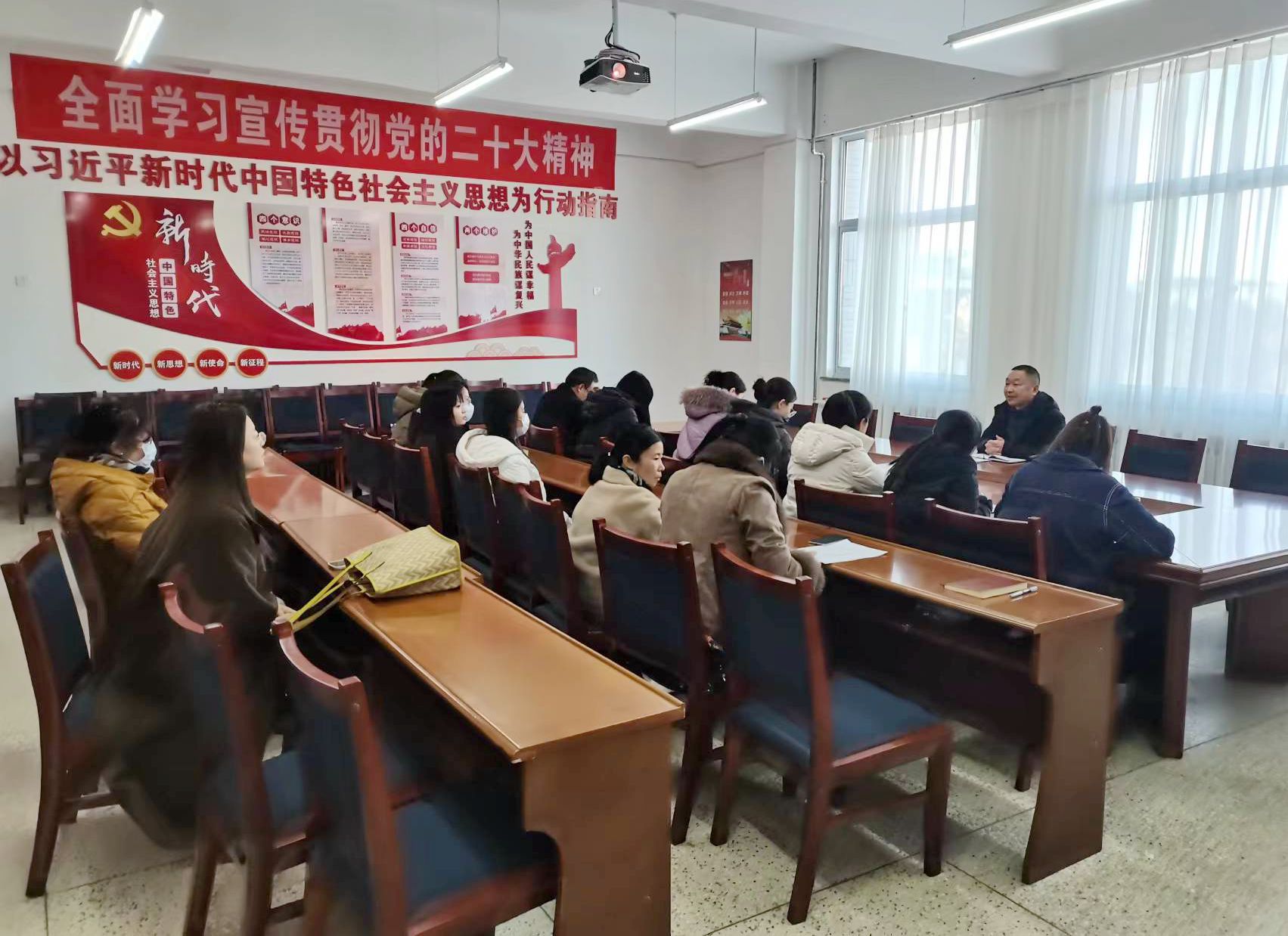 今年是習近平總書記在學校思想政治理論課教師座談會上發(fā)表重要講話五周年,為推動學習貫徹習近平新時代中國特色社會主義思想走深走實,進一步提高思政課教學質量,3月15日,馬克思主義學院召開學習貫徹習近平總書記“3·18”重要講話精神座談會,馬克思主義學院負責人劉心主持會議,全體教師參加座談。