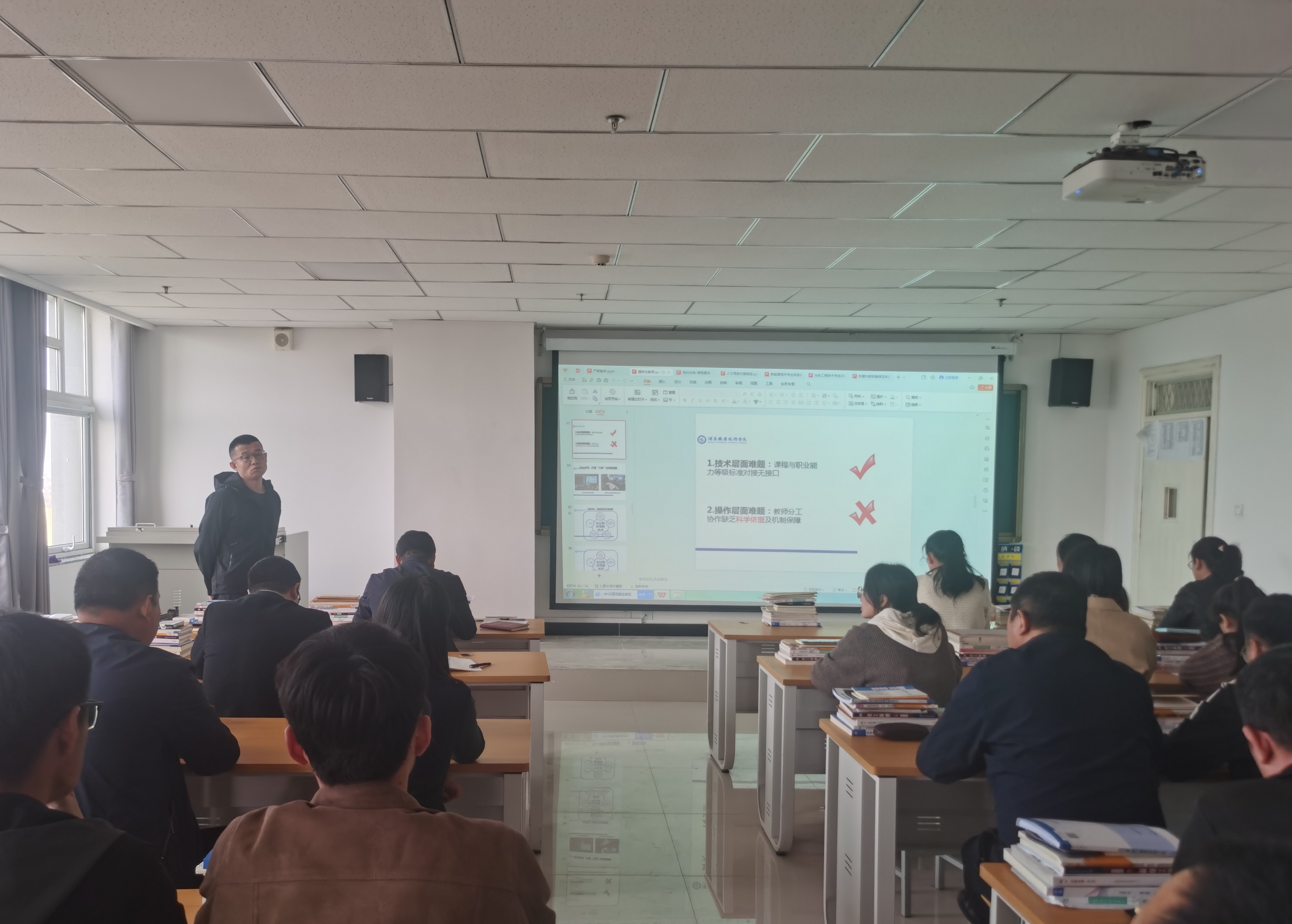 4月12日下午,中科低碳新能源技術(shù)學(xué)院在能源科技樓612教室召開光伏工程技術(shù)專業(yè)骨干教師國(guó)培項(xiàng)目培訓(xùn)匯報(bào)暨國(guó)家級(jí)教師創(chuàng)新團(tuán)隊(duì)高質(zhì)量發(fā)展研討交流會(huì),光伏工程技術(shù)國(guó)家級(jí)教師創(chuàng)新團(tuán)隊(duì)成員及專業(yè)教師共24人參加會(huì)議,會(huì)議由學(xué)院副院長(zhǎng)、國(guó)家級(jí)教師創(chuàng)新團(tuán)隊(duì)負(fù)責(zé)人黃述杰主持。