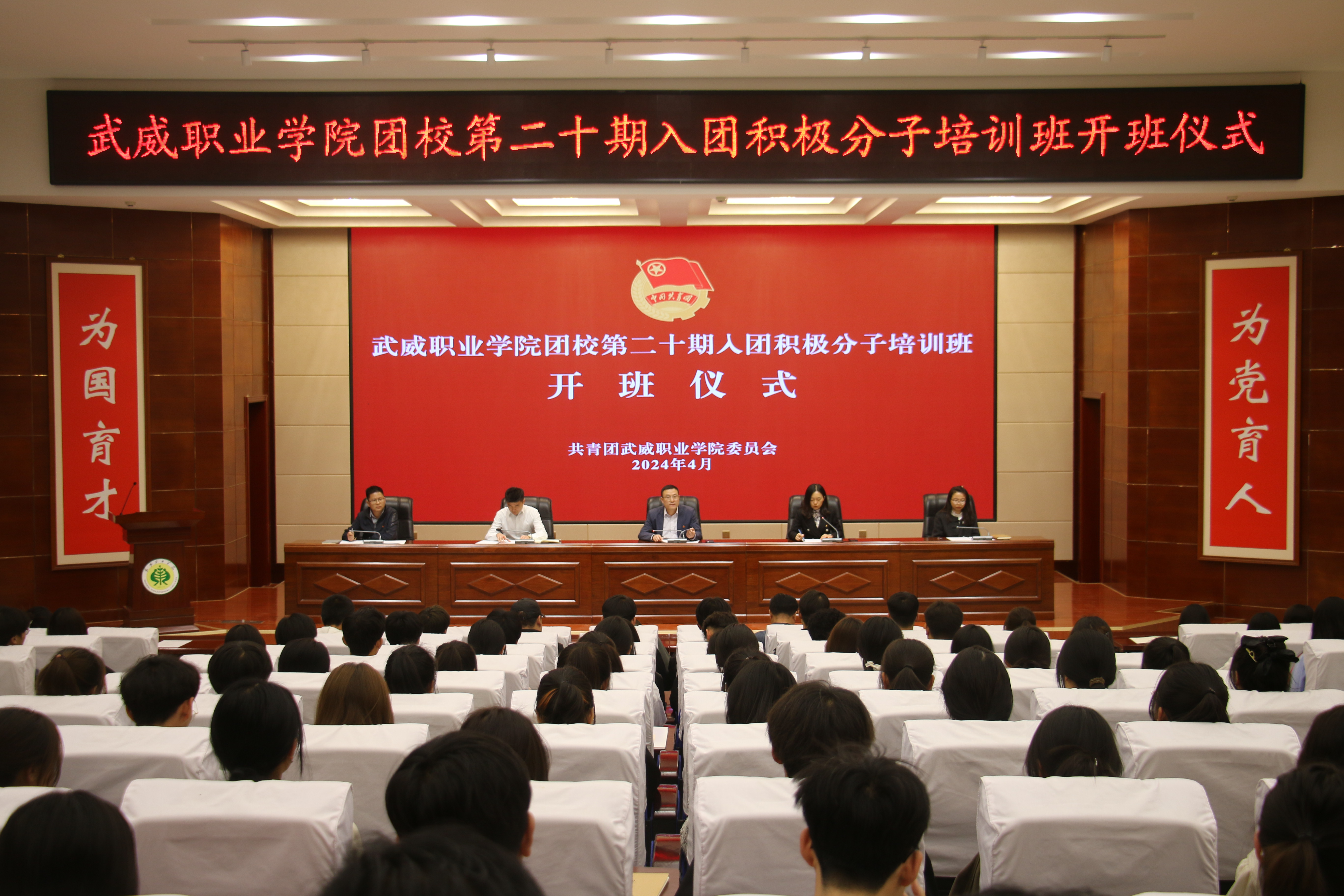 4月10日下午,學(xué)校團校第二十期入團積極分子培訓(xùn)班在菁英廳舉行開班儀式。校團委全體干部、二級學(xué)院團委書記及210余名入團積極分子學(xué)員代表參加開班儀式。儀式由校團委副書記謝麗霞主持。
