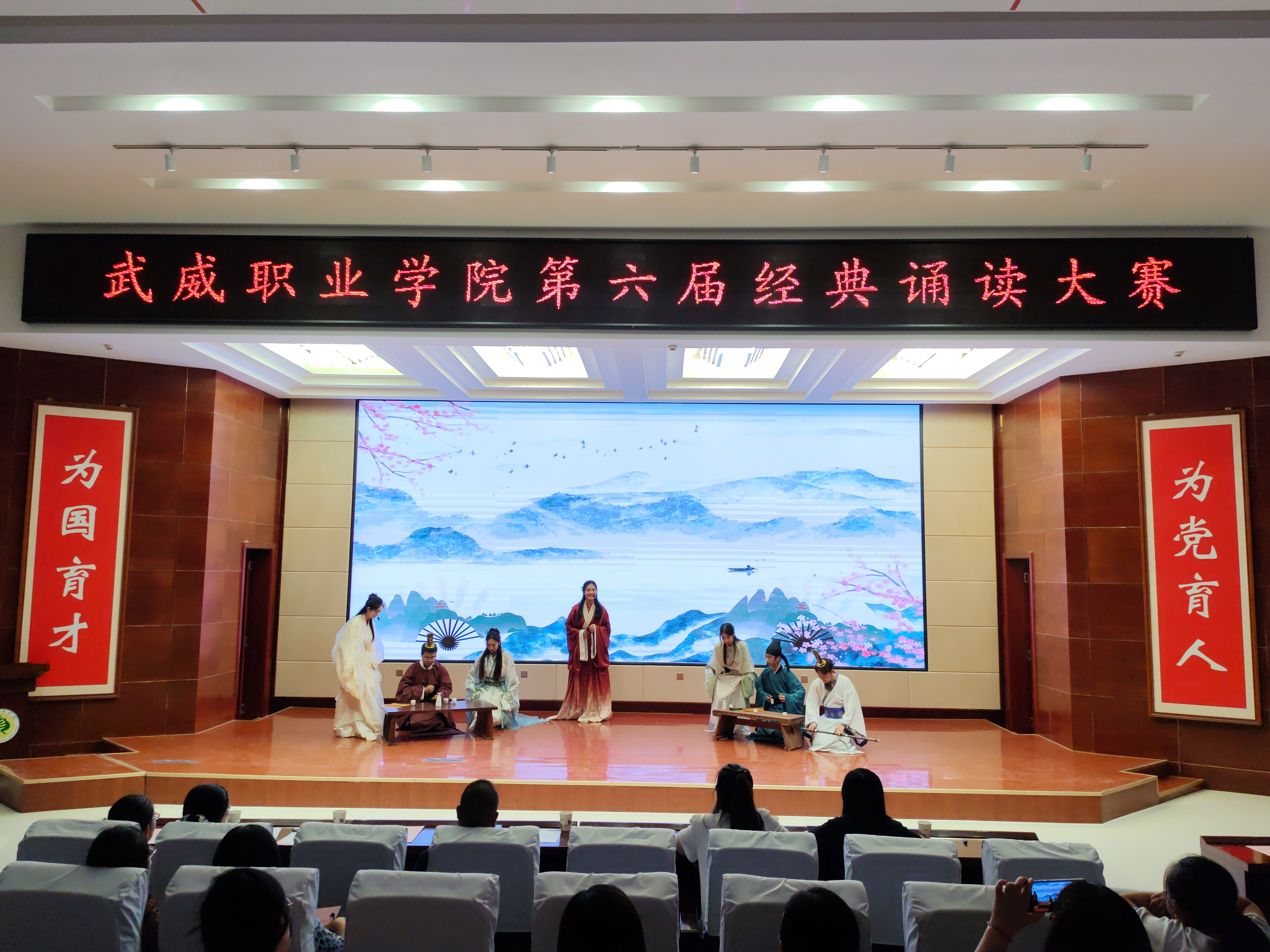 為深化全民閱讀活動開展,引領(lǐng)社會大眾親近中華經(jīng)典,傳承弘揚(yáng)中華優(yōu)秀文化,齊心共書強(qiáng)國新篇章,武威職業(yè)學(xué)院第六屆經(jīng)典誦讀大賽于6月4日在菁英廳成功舉辦。黨委委員、副校長田迎春,科研處處長蔡柱山出席比賽現(xiàn)場,邀請語言文字專業(yè)5位評委為教師組、學(xué)生組、留學(xué)生組共20件參賽作品進(jìn)行現(xiàn)場評分。