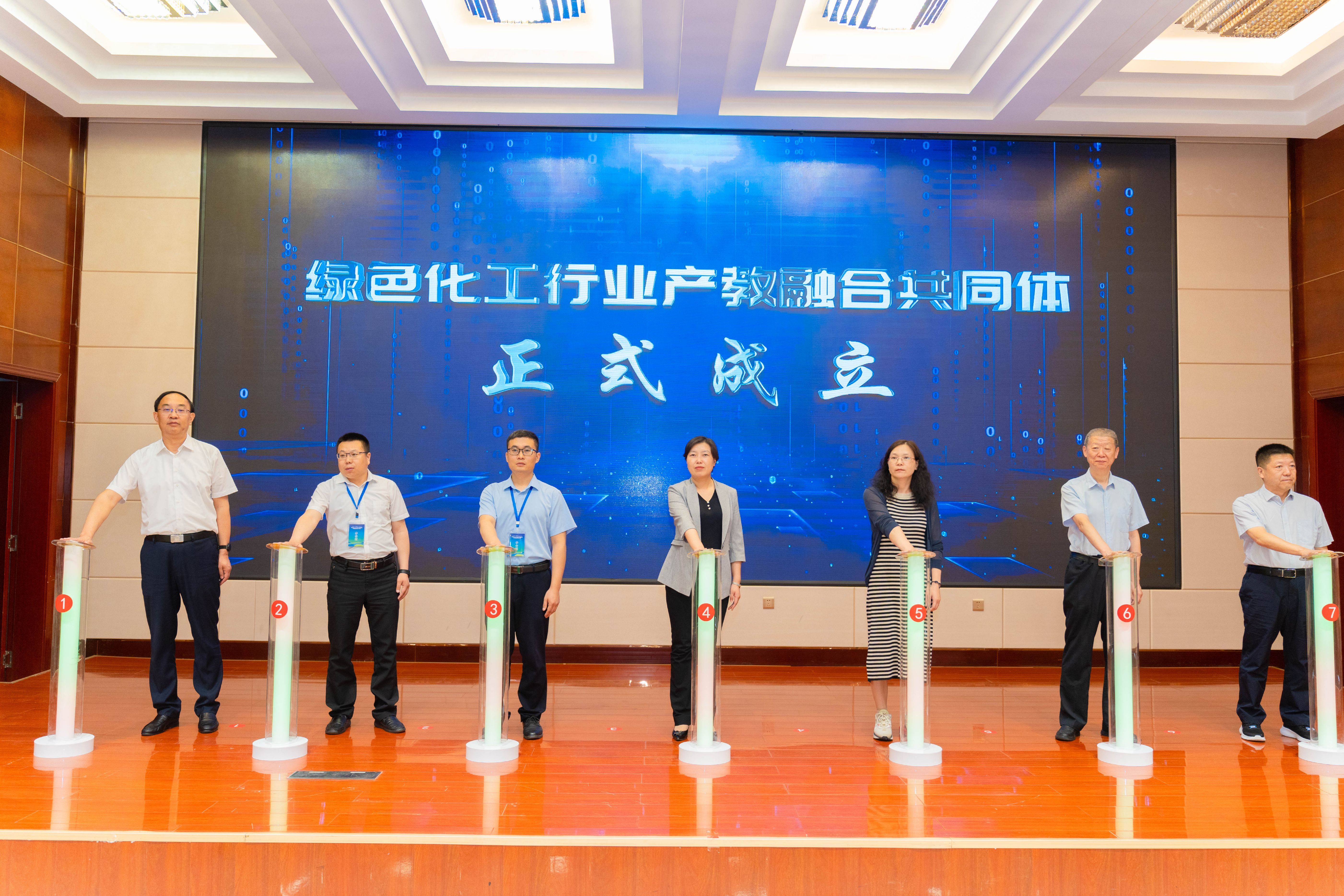 啟動(dòng)儀式上,與會(huì)領(lǐng)導(dǎo)共同按下啟動(dòng)手印,宣布綠色化工產(chǎn)教融合共同體正式成立。大會(huì)公布了綠色化工行業(yè)產(chǎn)教融合共同體理事會(huì)成員單位名單,并為副理事長單位授牌。