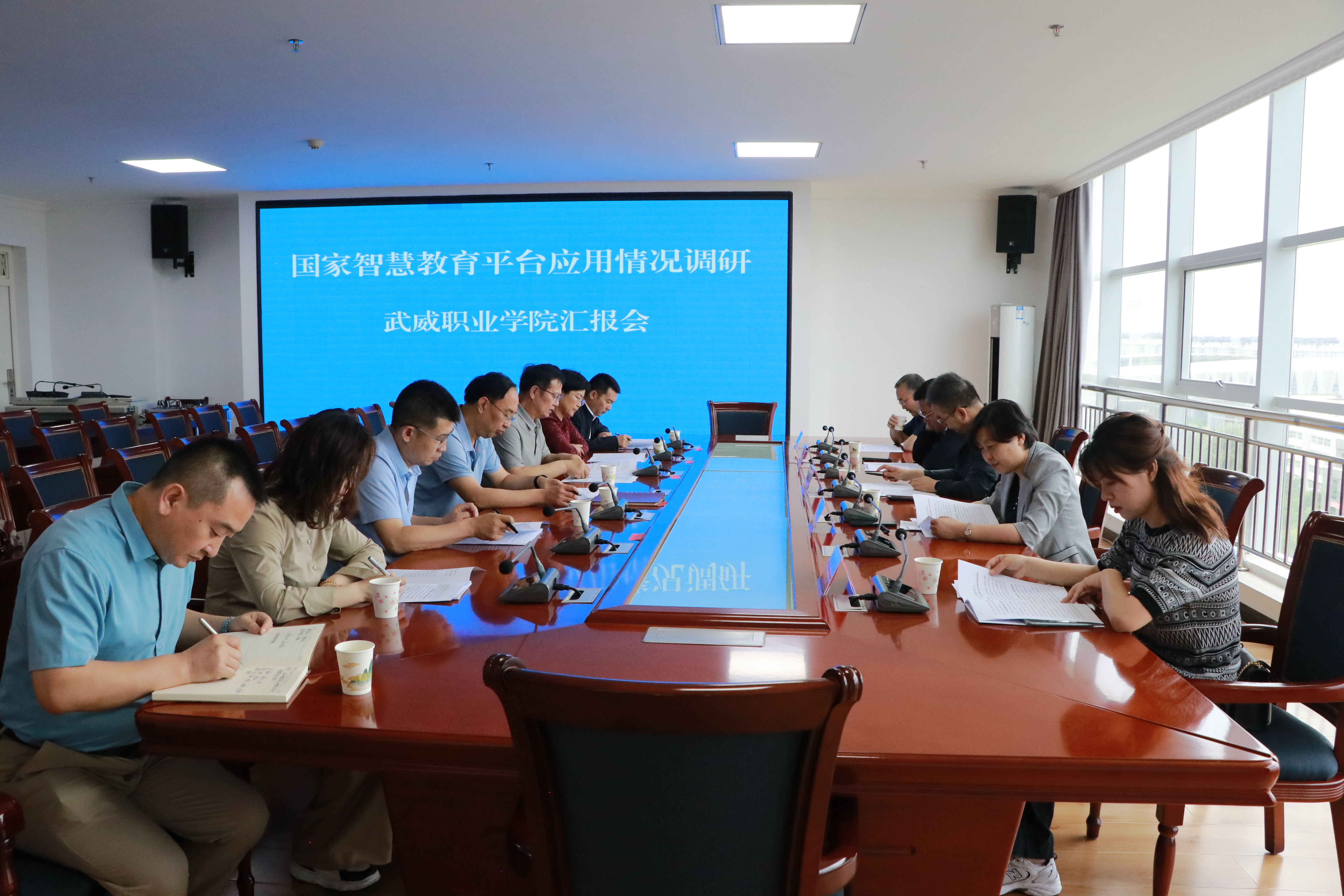 6月20日,甘肅省電化教育中心黨支部書記、主任梁翔一行來學(xué)校調(diào)研國家智慧教育平臺應(yīng)用情況。武威市教育局黨組書記、局長王娟,學(xué)校黨委書記王宏,校長、黨委副書記張開禮,學(xué)校黨委委員、副校長何毅陪同調(diào)研。教務(wù)處和網(wǎng)絡(luò)安全與信息技術(shù)中心負(fù)責(zé)人參會(huì)。