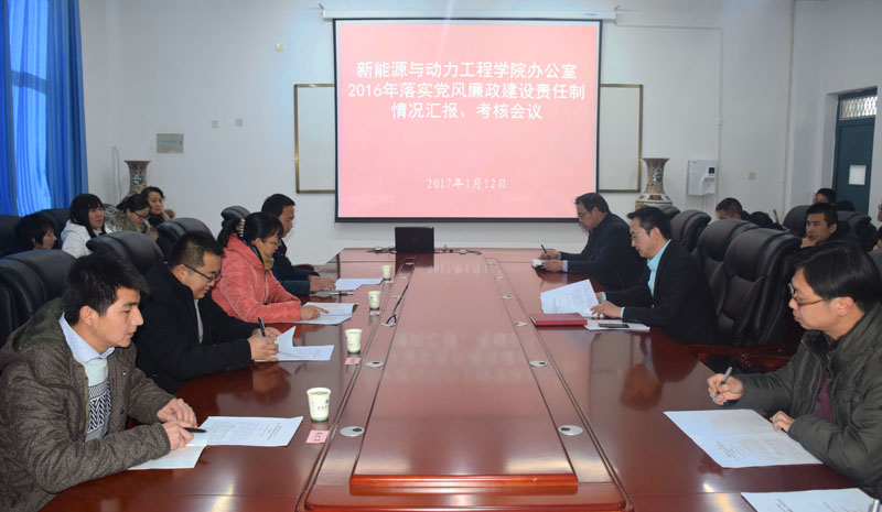 1月12日下午,學(xué)院副院長(zhǎng)田迎春帶領(lǐng)學(xué)院第六考核組,對(duì)新能源與動(dòng)力工程學(xué)院辦公室2016年度黨風(fēng)廉政建設(shè)和反腐敗工作進(jìn)行了全面檢查考核。新能源與動(dòng)力工程學(xué)院全體教職工參加了會(huì)議。