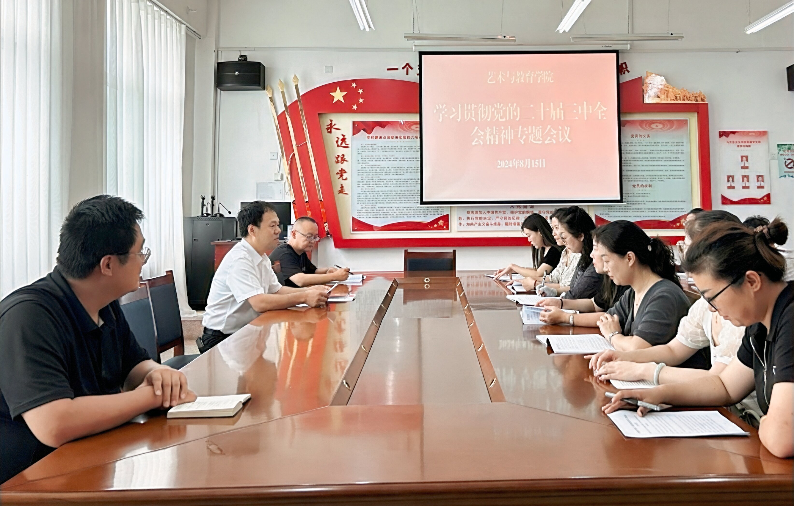 8月15日,藝術(shù)與教育學(xué)院召開黨的二十屆三中全會精神專題學(xué)習(xí)會議,傳達(dá)學(xué)習(xí)《習(xí)近平總書記關(guān)于<中共中央關(guān)于進(jìn)一步全面深化改革、推進(jìn)中國式現(xiàn)代化的決定>的說明》《中國共產(chǎn)黨第二十屆中央委員會第三次全體會議公報(bào)》《中共中央關(guān)于進(jìn)一步全面深化改革推進(jìn)中國式現(xiàn)代化的決定》,以及《深化教育綜合改革》等內(nèi)容。會議由學(xué)院黨總支書記王政主持,全體教職工參加會議。