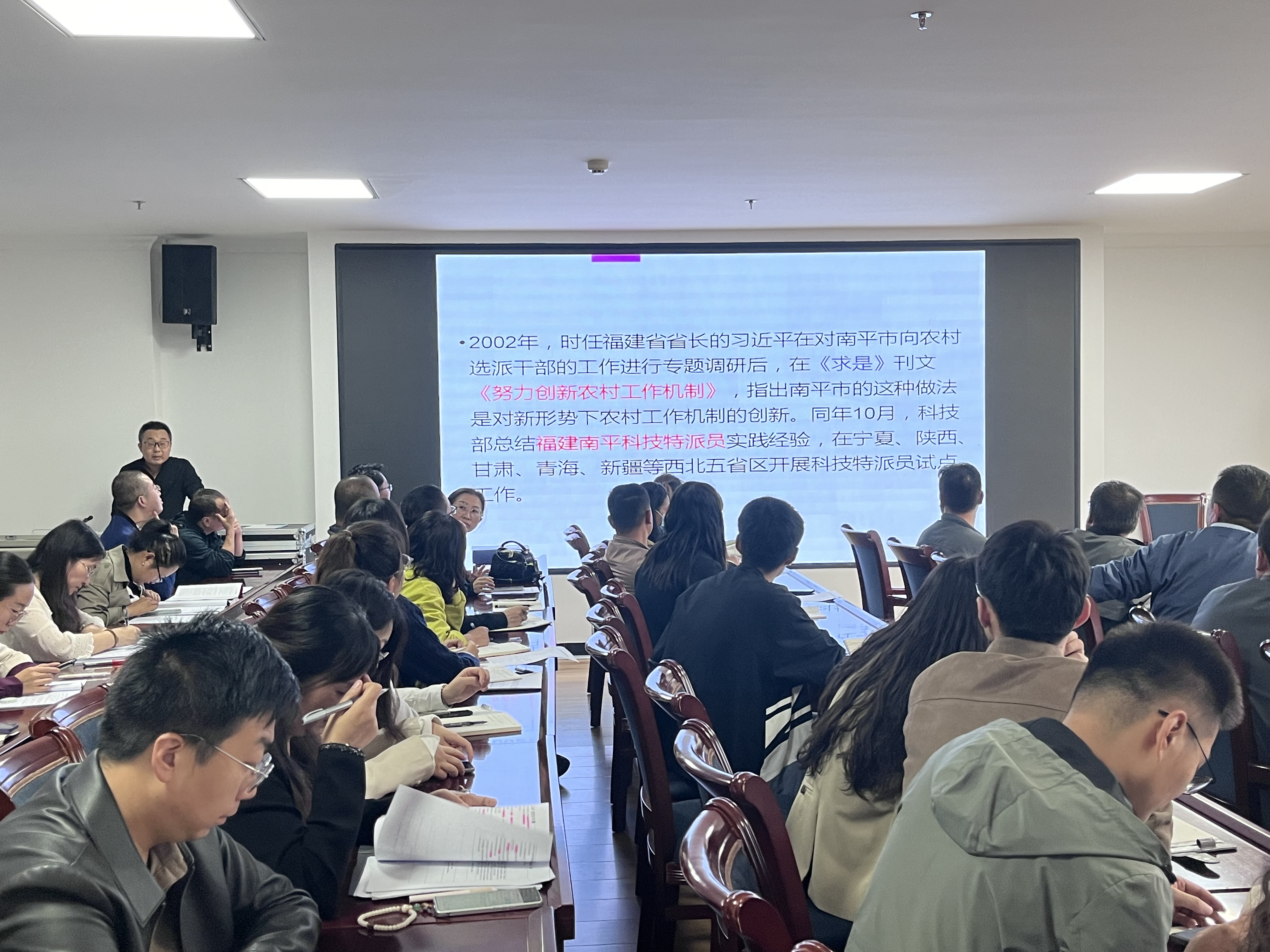 首先,科技處處長蔡柱山帶領(lǐng)科技特派員及全體工作人員學(xué)習(xí)了《習(xí)近平總書記關(guān)于科技特派員工作指示精神摘錄》《武威市科技特派員管理辦法》《武威市2024年科技特派員工作要點》《武威職業(yè)學(xué)院科技特派員、“三區(qū)”科技人才管理辦法》等文件精神。會議開展了交流活動,現(xiàn)場氣氛活躍,互動頻繁。4名科技特派員優(yōu)秀代表發(fā)言,分享了自己在科技服務(wù)中的收獲感想,激勵大家持續(xù)開展科技服務(wù)工作,增強做好科技特派員工作的責(zé)任感和使命感。最后,蔡柱山作總結(jié)講話,提出了工作要求及希望,指出各位科技特派員和“三區(qū)”科技人才要加強理論學(xué)習(xí),不斷提升科技服務(wù)能力;要堅持創(chuàng)新實踐,全力推進(jìn)工作走深走實;要強化示范引領(lǐng),努力打造典型科技創(chuàng)新支撐能力。