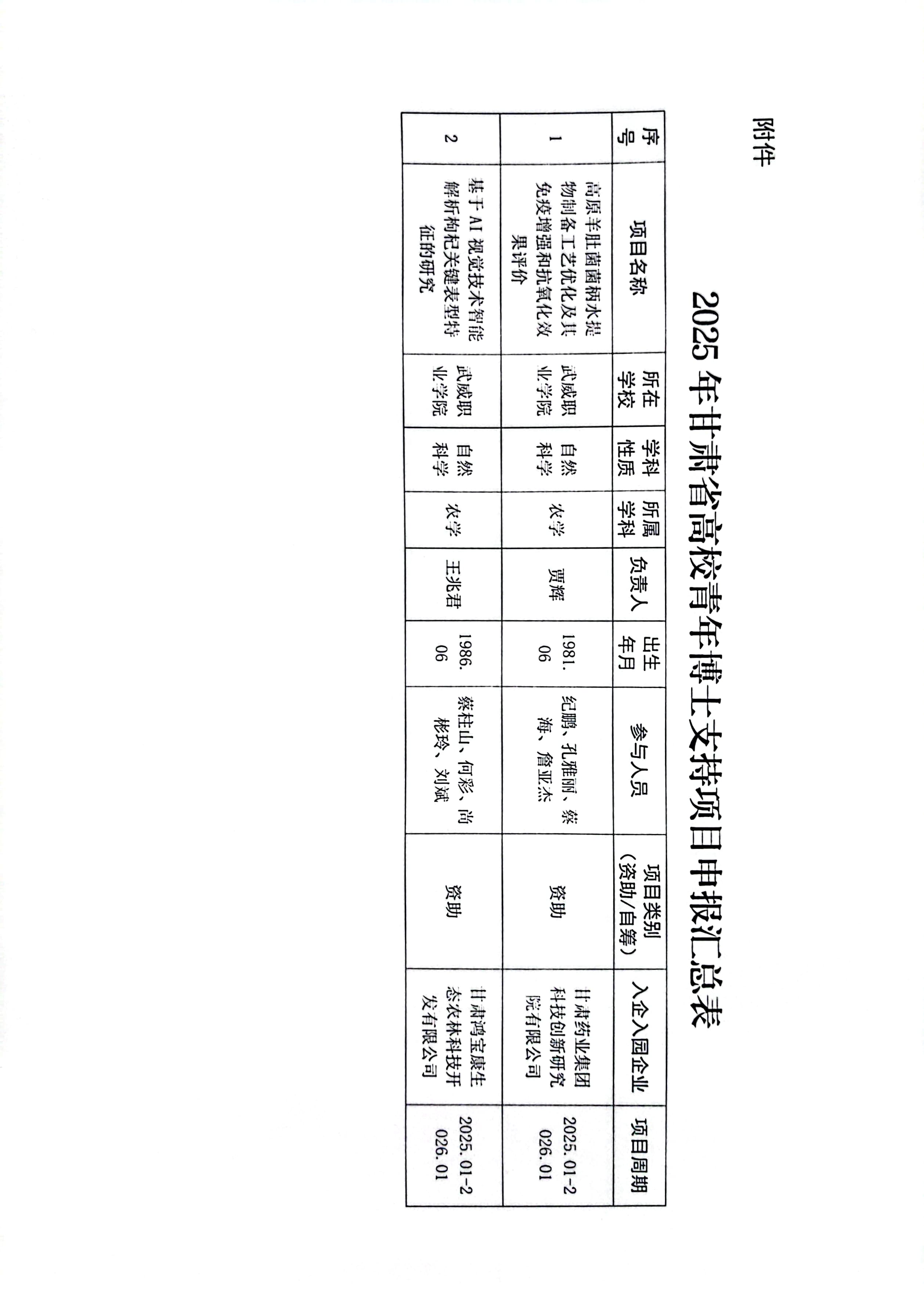 武威職業(yè)學(xué)院關(guān)于2025年度青年博士支持項(xiàng)目評(píng)審結(jié)果的公示