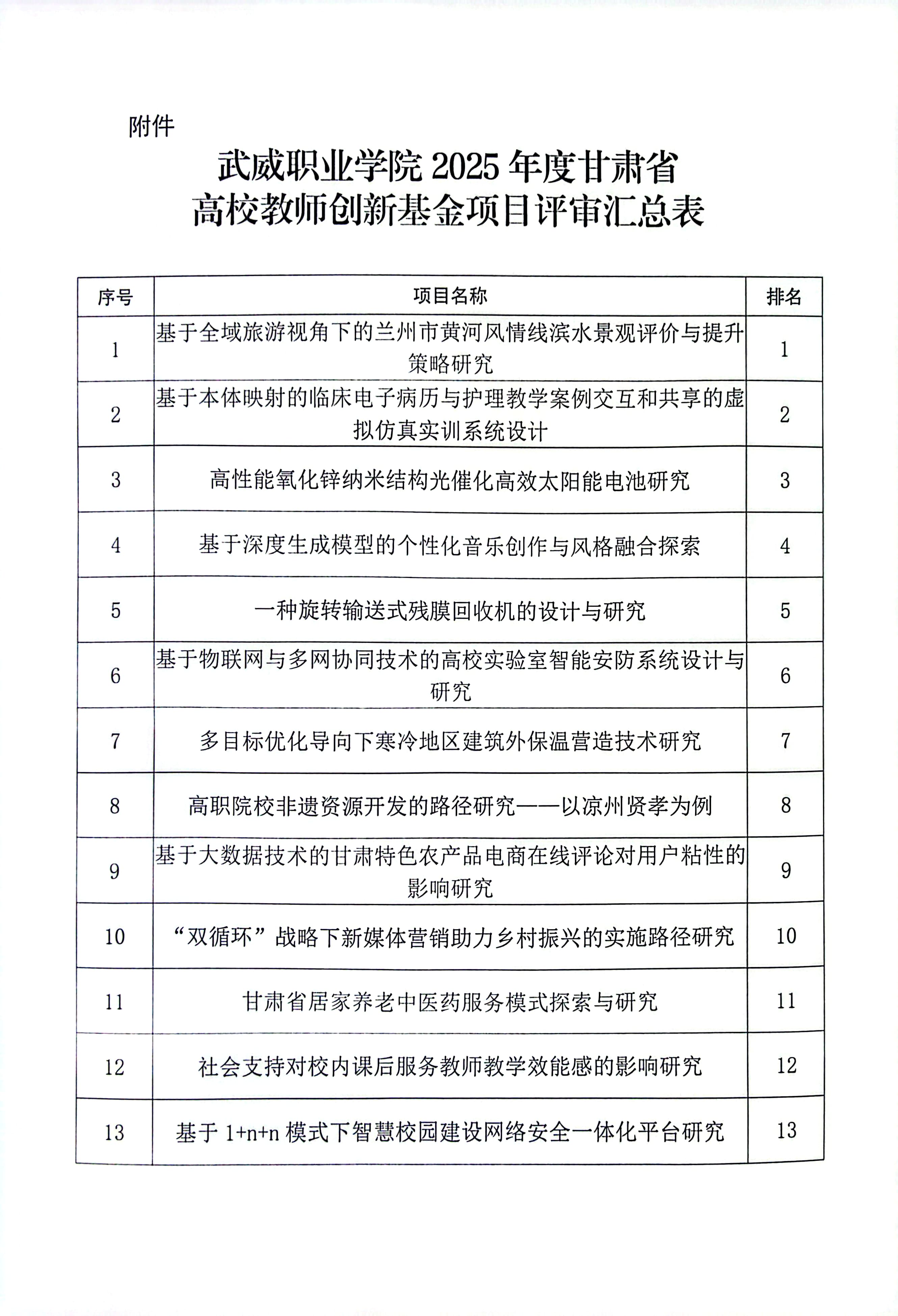 武威職業(yè)學院關于2025年度甘肅省高校教師創(chuàng)新基金項目評審結果的公示