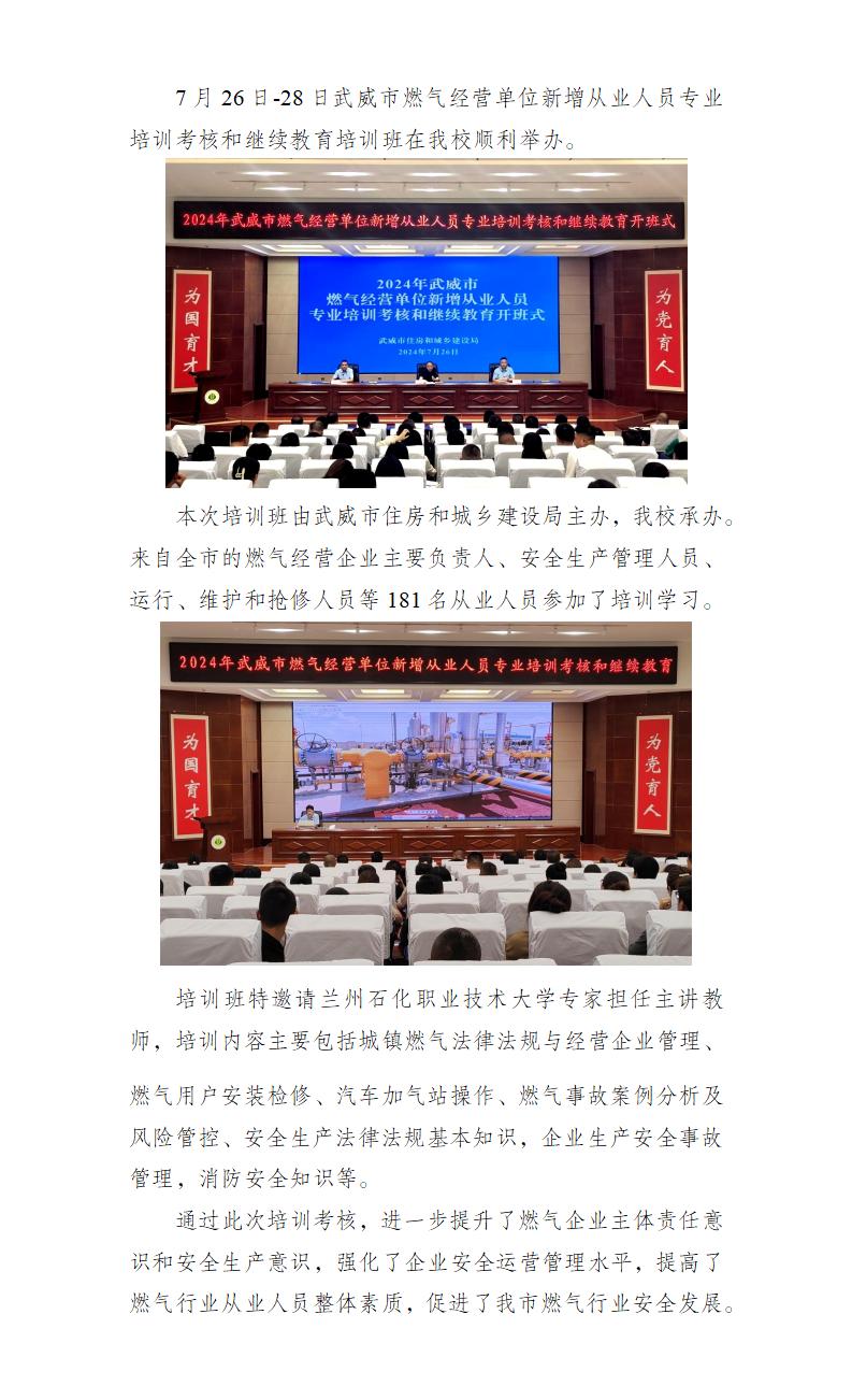 2024年武威市燃?xì)饨?jīng)營單位新增從業(yè)人員專業(yè)培訓(xùn)考核和繼續(xù)教育培訓(xùn)班在我校成功舉辦