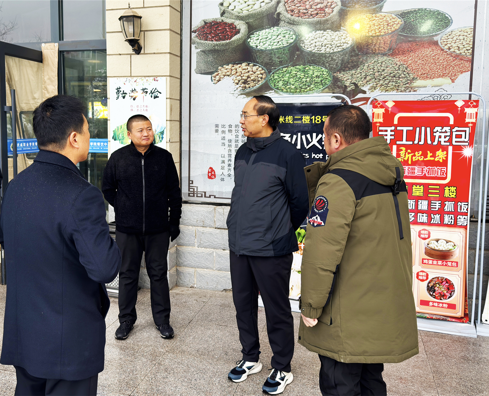 11月24日,河西走廊迎來入冬第一場瑞雪,為切實(shí)做好師生餐飲保障和食品安全,黨委書記王宏深入學(xué)生食堂檢查指導(dǎo),后勤管理處處長占發(fā)禹及相關(guān)負(fù)責(zé)同志陪同檢查。