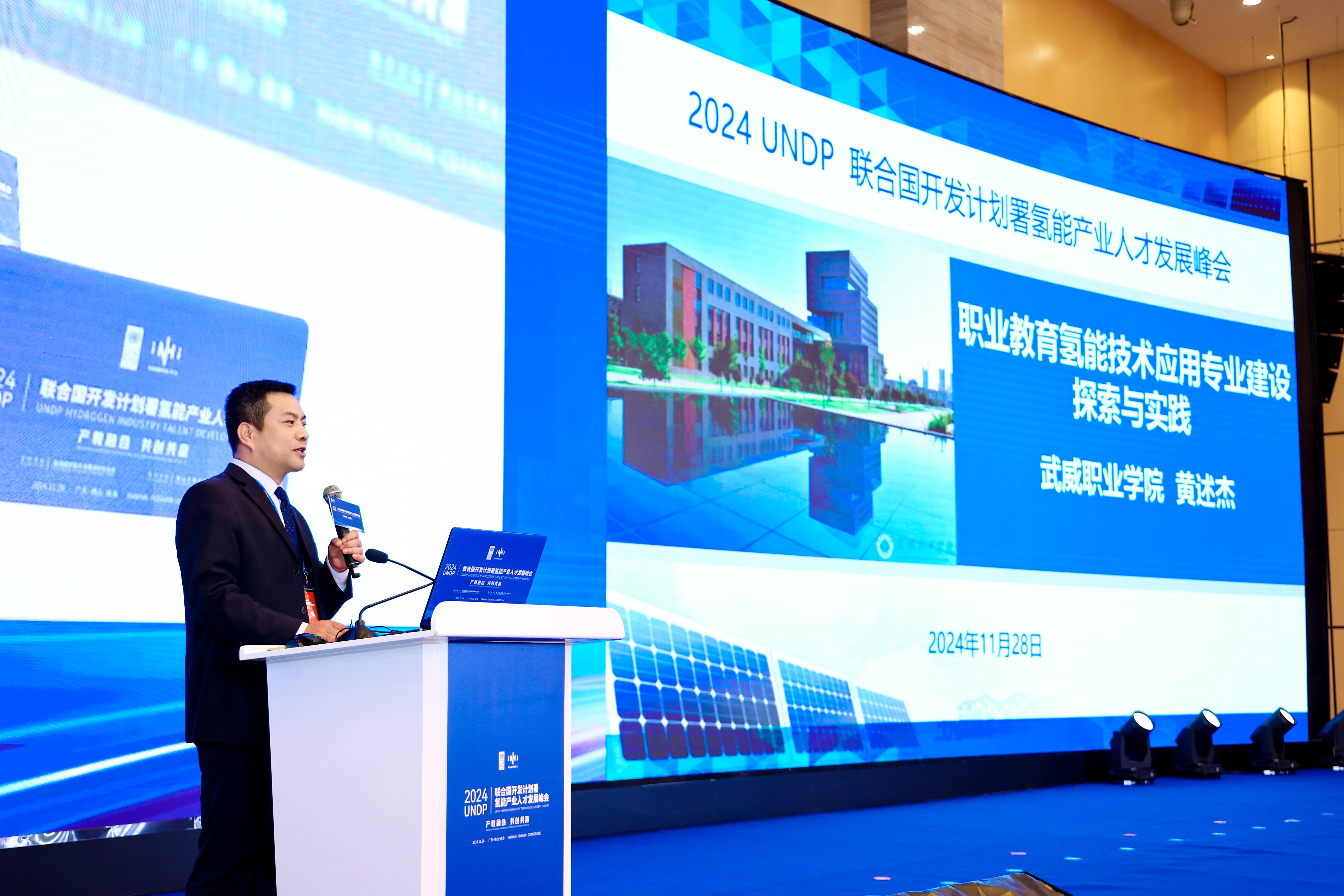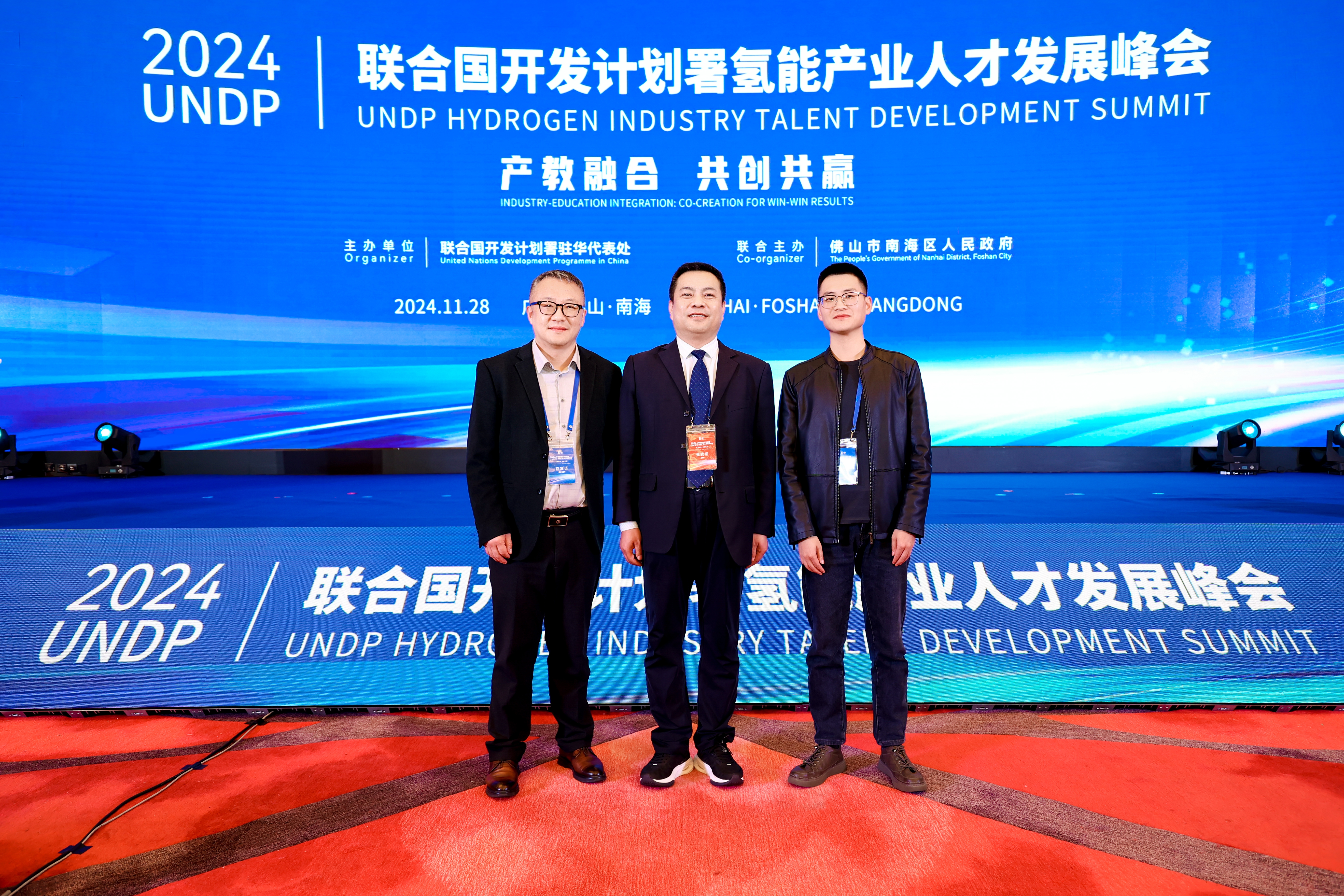 11月28日,由聯(lián)合國(guó)開發(fā)計(jì)劃署駐華代表處、佛山市南海區(qū)人民政府聯(lián)合主辦的UNDP(The United Nations Development Programme 聯(lián)合國(guó)開發(fā)計(jì)劃署)氫能產(chǎn)業(yè)人才發(fā)展峰會(huì)于佛山市成功舉行。本次峰會(huì)作為全國(guó)首個(gè)由國(guó)際機(jī)構(gòu)主導(dǎo)的國(guó)際氫能產(chǎn)業(yè)人才會(huì)議,聚焦氫能領(lǐng)域高素質(zhì)技能人才的培養(yǎng),推動(dòng)產(chǎn)教深度融合,探索為產(chǎn)業(yè)發(fā)展提供重要技能型人才支撐路徑。我院中科低碳新能源技術(shù)學(xué)院院長(zhǎng)黃述杰教授、王廣華博士和王續(xù)峰老師參加此次會(huì)議。