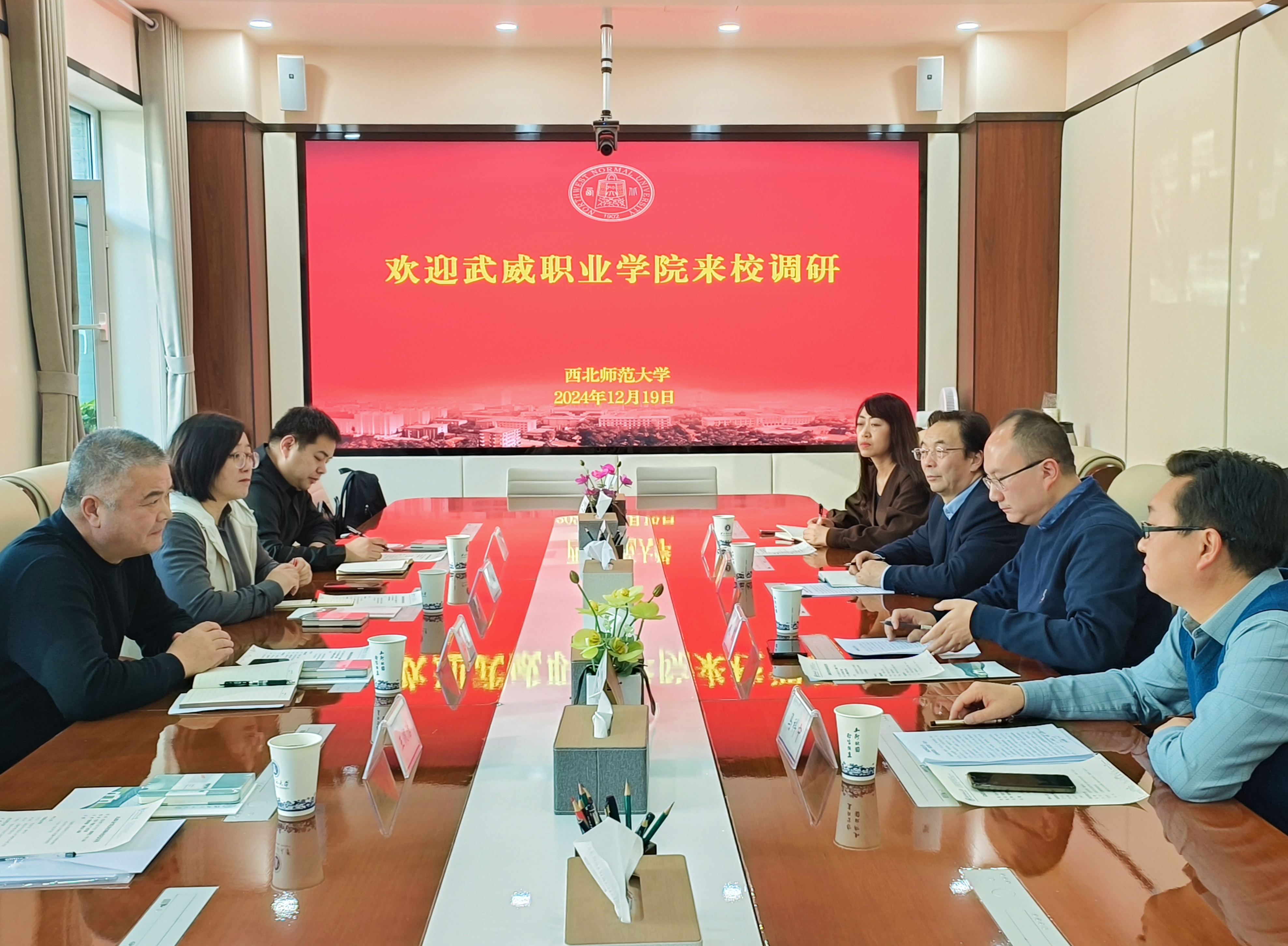 西北師范大學(xué)黨委常委、副校長趙鑫表示要進(jìn)一步加強(qiáng)合作交流,充分發(fā)揮自身優(yōu)勢(shì),促進(jìn)雙方共享優(yōu)質(zhì)教學(xué)資源。與會(huì)老師就加強(qiáng)院校合作、教師繼續(xù)教育、留學(xué)生學(xué)生聯(lián)合培養(yǎng)、簽署戰(zhàn)略合作協(xié)議、后勤服務(wù)管理等內(nèi)容與國際文化交流學(xué)院、后勤保障部負(fù)責(zé)人展開了深入交流。