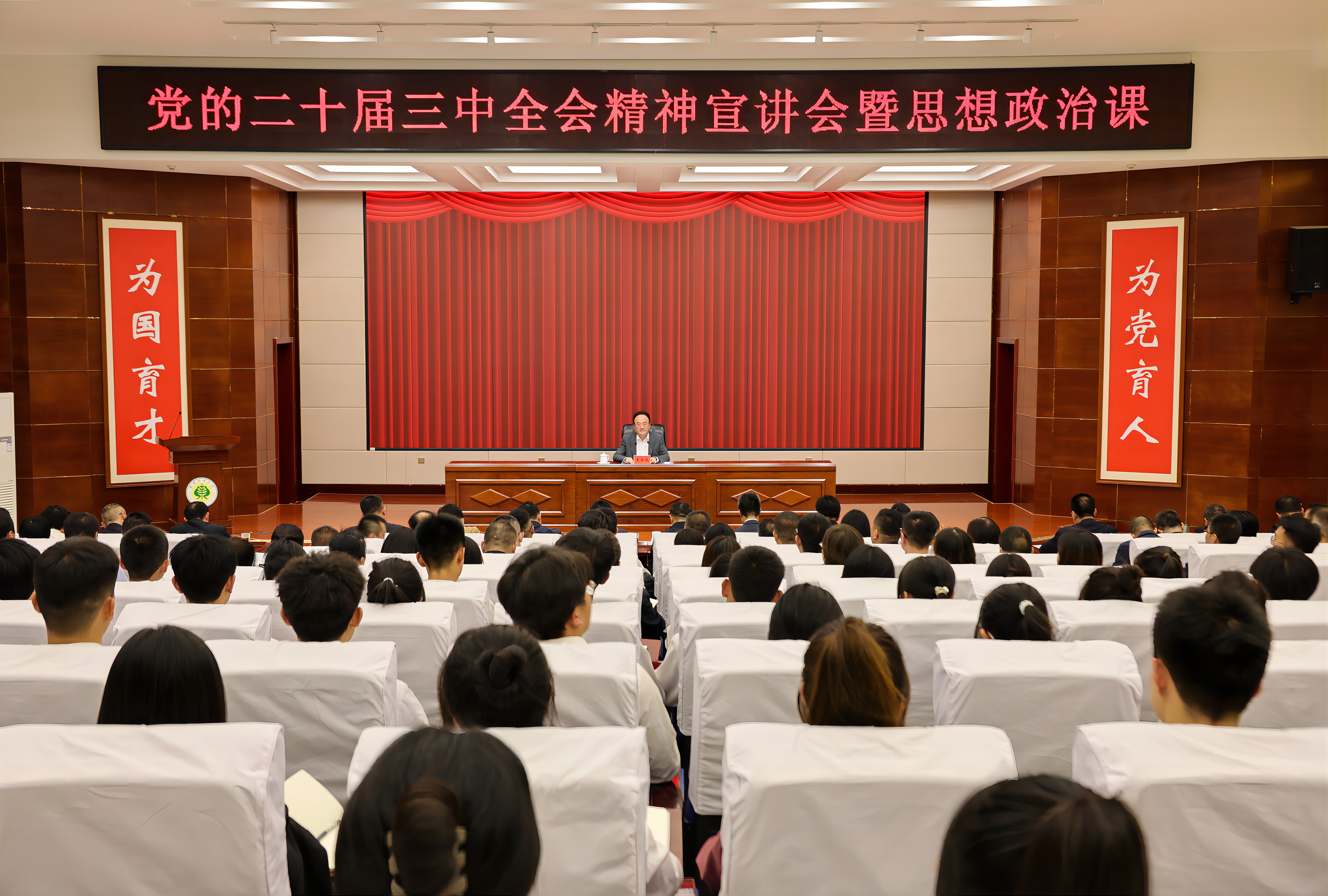 9月23日,市委書記王國斌來到武威職業(yè)學(xué)院,調(diào)研學(xué)院發(fā)展和思想政治建設(shè)情況,向廣大師生宣講黨的二十屆三中全會精神,講授思想政治課。王國斌勉勵青年學(xué)生牢記習(xí)近平總書記對新時代青年的殷切寄語,學(xué)深悟透黨的二十屆三中全會精神,胸懷理想、激揚青春,以青春之我、奮斗之我,勇?lián)鷷r代使命任務(wù),在中國式現(xiàn)代化武威實踐中放飛青春夢想。王國斌從進一步全面深化改革的重大意義、重大成就、重大部署、重大舉措等方面對黨的二十屆三中全會精神進行了宣講和闡釋,并與學(xué)院師生分享了學(xué)習(xí)感悟和體會。他強調(diào),黨的二十屆三中全會對深化教育綜合改革作出系統(tǒng)部署,提出了一系列重點舉措,為我們深化教育領(lǐng)域綜合改革指明了實踐路徑。要全面貫徹落實全會關(guān)于深化教育綜合改革的新部署新要求,系統(tǒng)謀劃武威教育改革實踐路徑,抓實抓細各項改革任務(wù),確保教育領(lǐng)域綜合改革取得實實在在成效。王國斌強調(diào),推進中國式現(xiàn)代化武威實踐,需要廣大青年奮發(fā)有為、勇挑大梁,展現(xiàn)新作為、干出新業(yè)績。希望青年學(xué)子自覺沿著習(xí)近平總書記指引的方向茁壯成長,以堅定信念把穩(wěn)思想之舵,以擔(dān)當(dāng)實干實現(xiàn)人生價值,以高強本領(lǐng)夯實發(fā)展之基,以實干篤行書寫人生精彩,在追逐夢想的新征程上描繪無悔于青春的絢麗畫卷。廣大教師要堅守教書育人、立德樹人的使命,做學(xué)生錘煉品格、學(xué)習(xí)知識、創(chuàng)新思維、奉獻祖國的引路人。職業(yè)學(xué)院要把創(chuàng)建武威職業(yè)技術(shù)大學(xué)作為學(xué)校實現(xiàn)跨越式發(fā)展的頭等大事,以創(chuàng)建本科層次職業(yè)學(xué)校為抓手,借勢改革東風(fēng),持續(xù)優(yōu)化辦學(xué)條件,加力提速推進武威職業(yè)技術(shù)大學(xué)創(chuàng)建工作,力爭早日辦成屬于武威人民的第一所本科院校。市領(lǐng)導(dǎo)華偉、王強參加,武威職業(yè)學(xué)院師生代表聆聽了宣講。