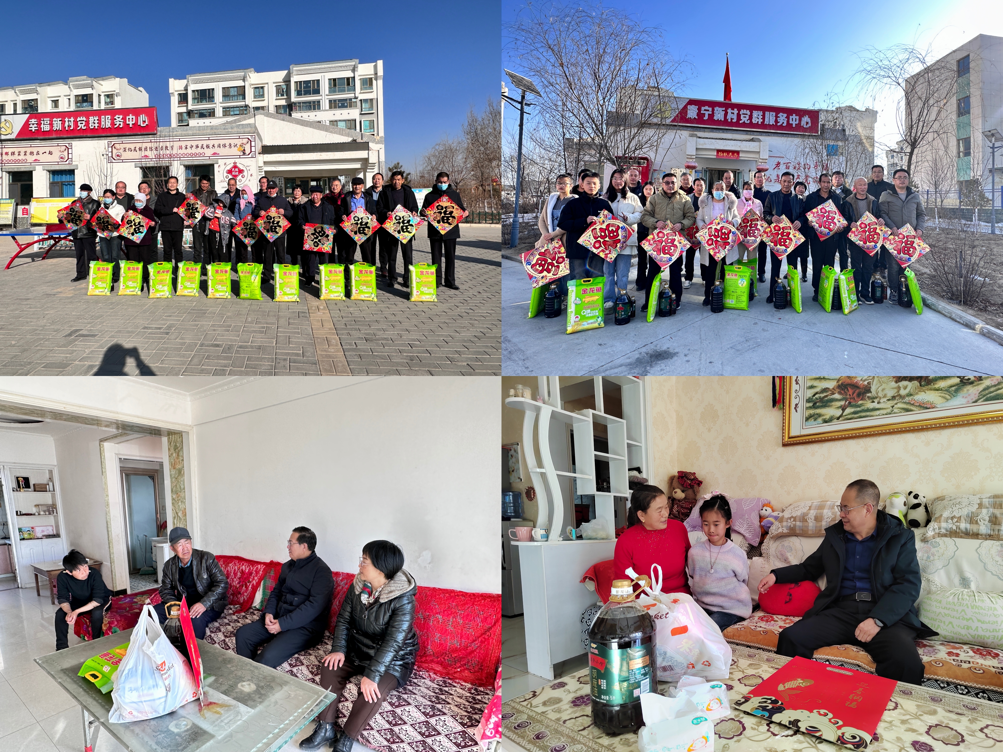 1月22日,學校在古浪縣橫梁鄉(xiāng)康寧新村、幸福新村開展春節(jié)前走訪慰問和送溫暖、送春聯(lián)、送祝?;顒?。黨委副書記、副校長張開禮,黨委副書記翟存祥,副校長何毅帶隊到村,與橫梁鄉(xiāng)政府和2個村委會相關同志就加快推進鄉(xiāng)村振興開展共同研究,就來年幫扶工作作了對接溝通。校領導為困難群眾、結對幫扶戶、駐村工作隊送上春聯(lián)、福字、窗花、大米、胡麻油等慰問品,并開展文化共建,將學校的關心關愛傳遞到了基層群眾心里,進一步豐富了群眾精神文化生活,營造了祥和、喜慶的節(jié)日氛圍。