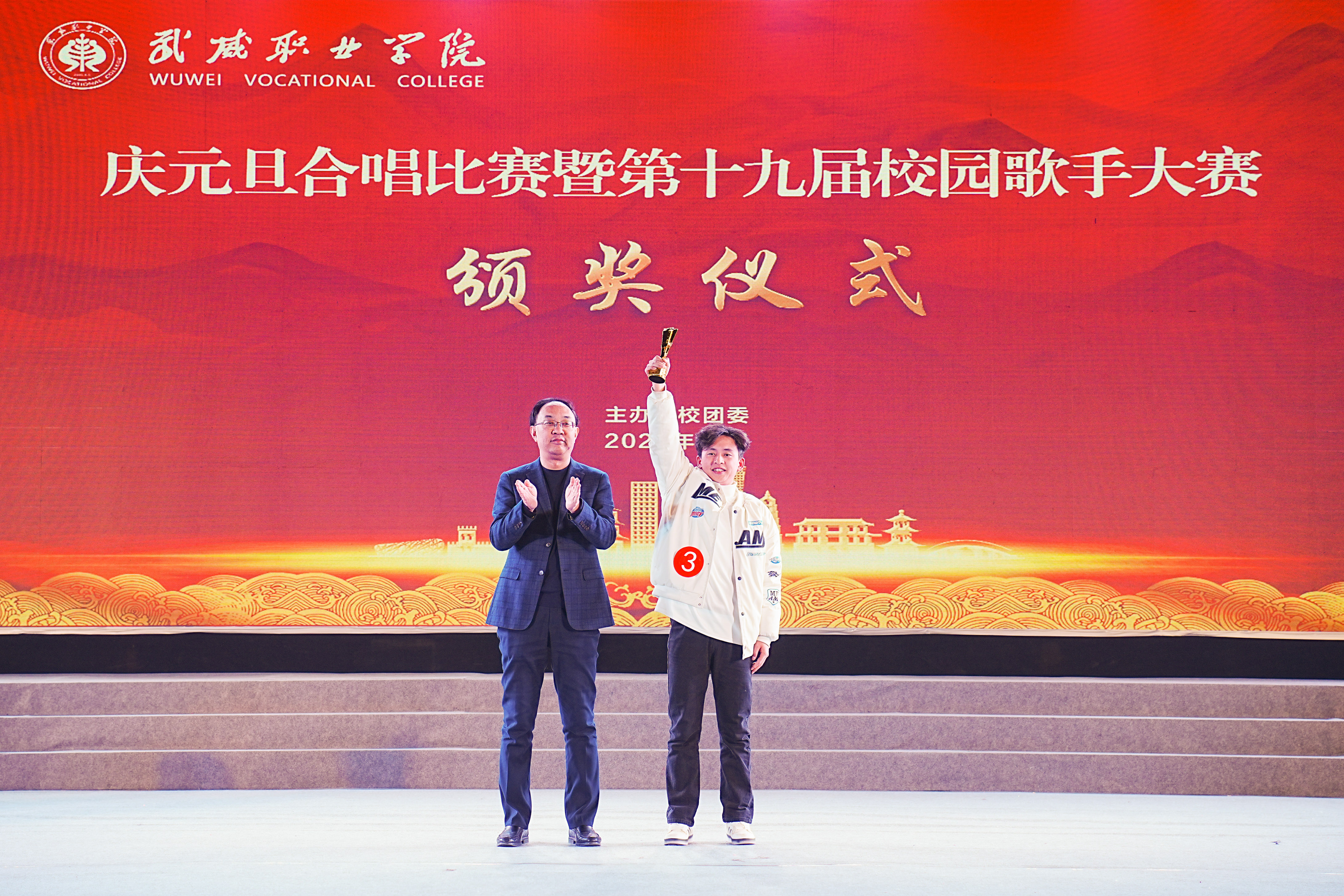 歌聲獻禮時代,青春唱響未來。12月26日晚,學校“慶元旦”合唱比賽暨第十九屆校園歌手大賽在體育館成功舉辦。學校黨委書記王宏出席活動并為獲獎集體和個人頒獎,黨委委員、副校長王守云出席活動,各二級學院和相關(guān)部門負責人與2000余名師生現(xiàn)場觀看了比賽。