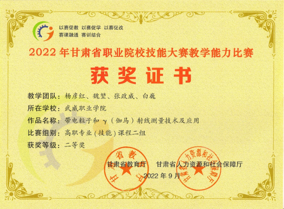 楊彥紅、魏堃、 張政威、白巍 | 帶點例子和伽馬射線測量技術(shù)及應(yīng)用 | 省級 | 二等 |