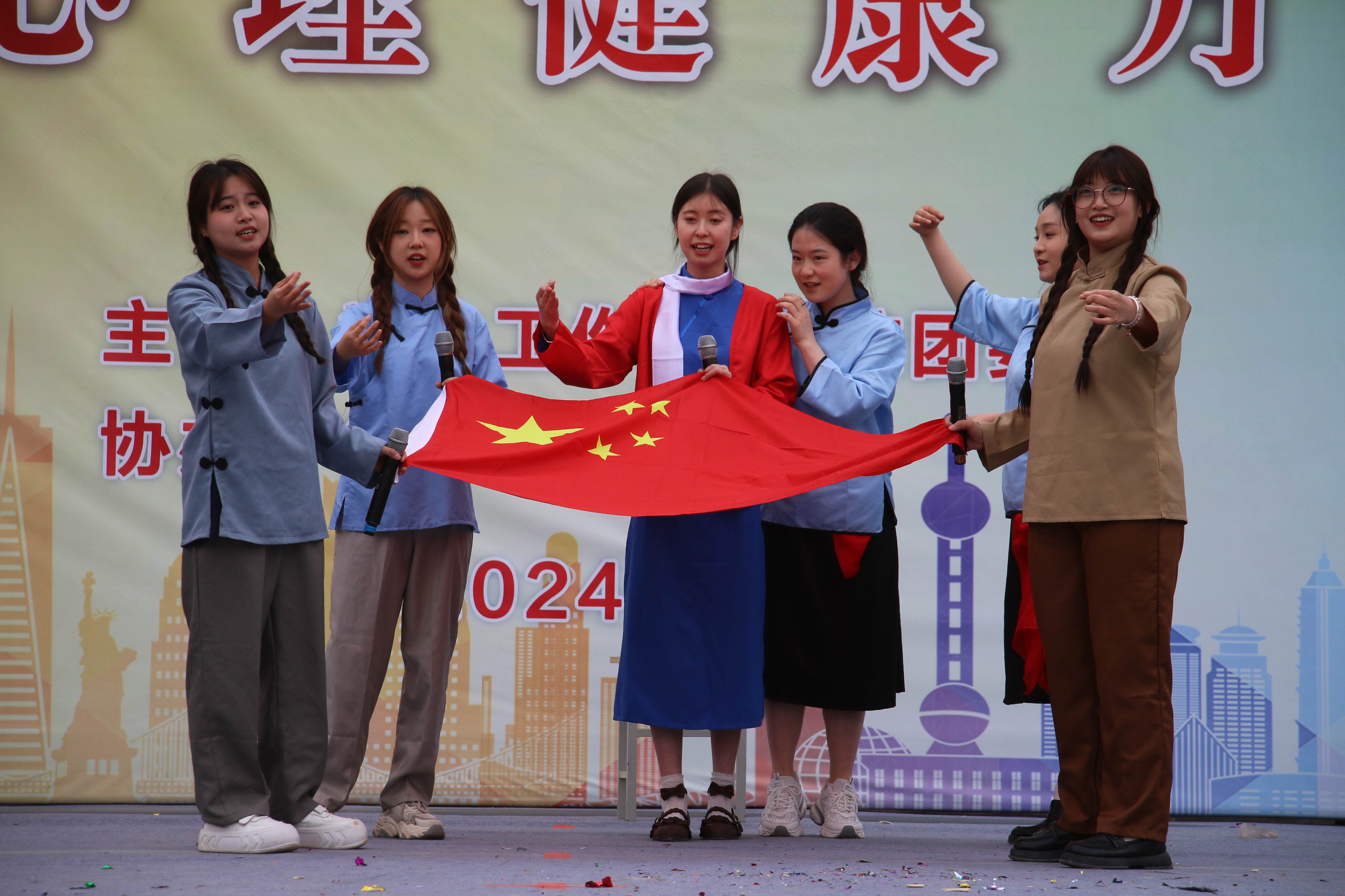 活動現(xiàn)場,各學生社團為現(xiàn)場觀眾帶來了20多個精彩紛呈的文藝節(jié)目,合唱、舞蹈、戲劇、小品、詩朗誦等形式輪番上陣,內(nèi)容豐富多彩,主題陽光向上,充分展示了學生社團的青春魅力;各學生社團還增加了如幸運大轉(zhuǎn)盤、套圈、手工DIY、成語接龍、謎語競猜等一系列有趣好玩的互動游戲,充分展示了我校學生社團活動特色。活動現(xiàn)場還設(shè)置了拍照打卡墻,吸引眾多師生參與其中拍照打卡留念,現(xiàn)場到處洋溢著歡樂的氣氛。同時,文化節(jié)開幕式活動全程進行了抖音直播,觀看人次達到1萬余人次,點贊突破5000人次,進一步擴大了社團影響力。