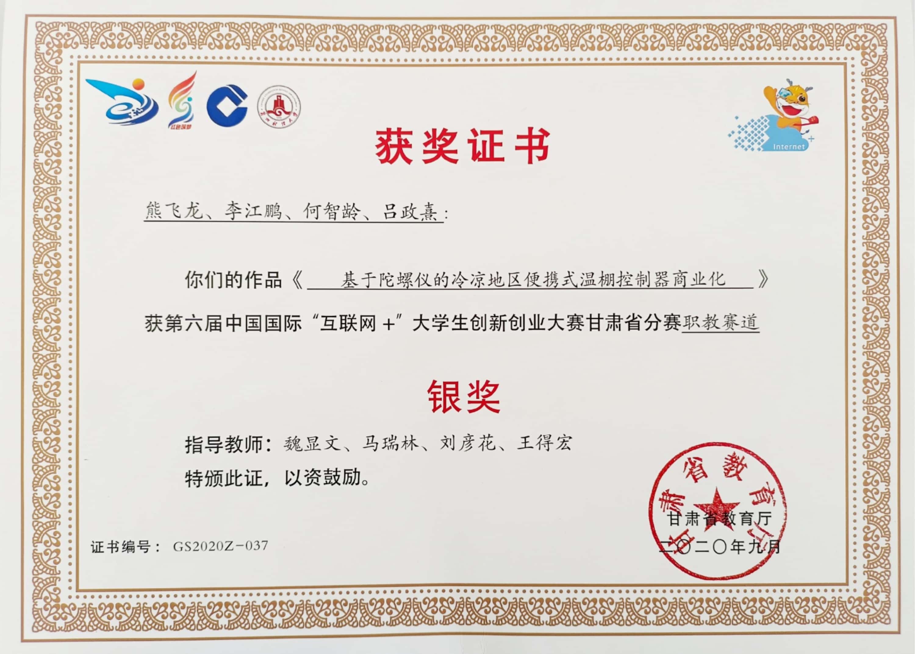 學(xué)生獲第六屆中國(guó)國(guó)際“互聯(lián)網(wǎng)+”大學(xué)生創(chuàng)新創(chuàng)業(yè)大賽甘肅省分賽銀獎(jiǎng)