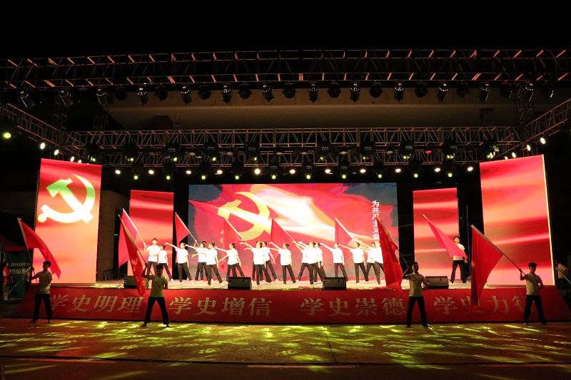 巡演以《勿忘國恥》短片拉開序幕,舞蹈《抗爭》《啟明》《新中國》《咱們工人有力量》等節(jié)目激勵學生愛黨、愛國、愛社會主義的情懷,做時代的奮斗者?!墩雇泛汀度朦h誓詞》宏大的場面將巡演推向了高潮。