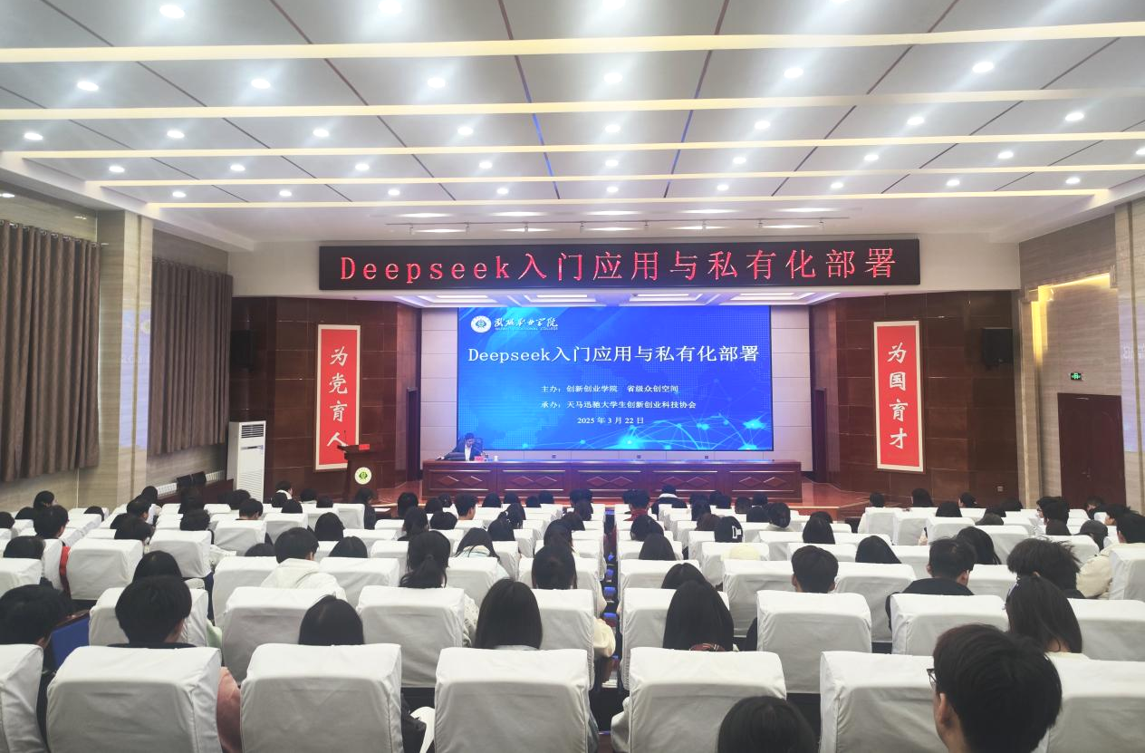 為深化校企合作、推動(dòng)人工智能技術(shù)在職業(yè)教育與創(chuàng)新實(shí)踐中的應(yīng)用,3月22日,天馬訊馳大學(xué)生創(chuàng)新創(chuàng)新科技協(xié)會(huì)特邀武威市大數(shù)據(jù)公司工程師劉曉寶,開展了“DeepSeek入門應(yīng)用與私有化部署”專題培訓(xùn),學(xué)校200余名師生參加了培訓(xùn)。