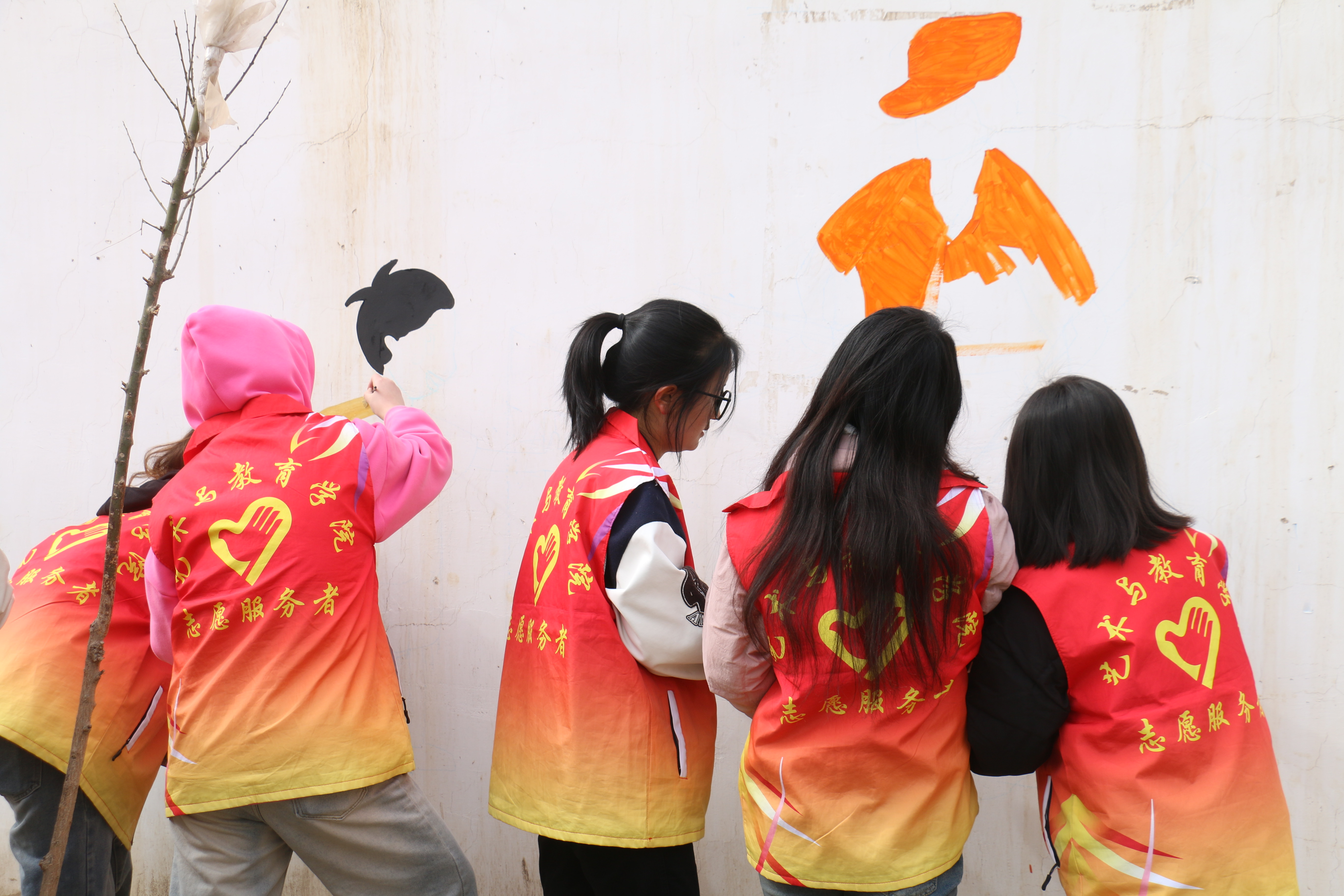 在涼州區(qū)富鑫源社區(qū),學前教育專業(yè)20余名學生化身“社區(qū)美育師”,與甘肅十二元素傳媒有限公司設計師共同完成了“鄰里和諧”主題墻繪。學生通過墻繪師的專業(yè)輔導,結合幼兒教育知識設計卡通圖案,將廢棄墻面變?yōu)椤皶v故事”的文化長廊。23級數字媒體班王格爾桑表示:從主題設計到落地實踐,我感受到藝術教育需要溫度和共情。