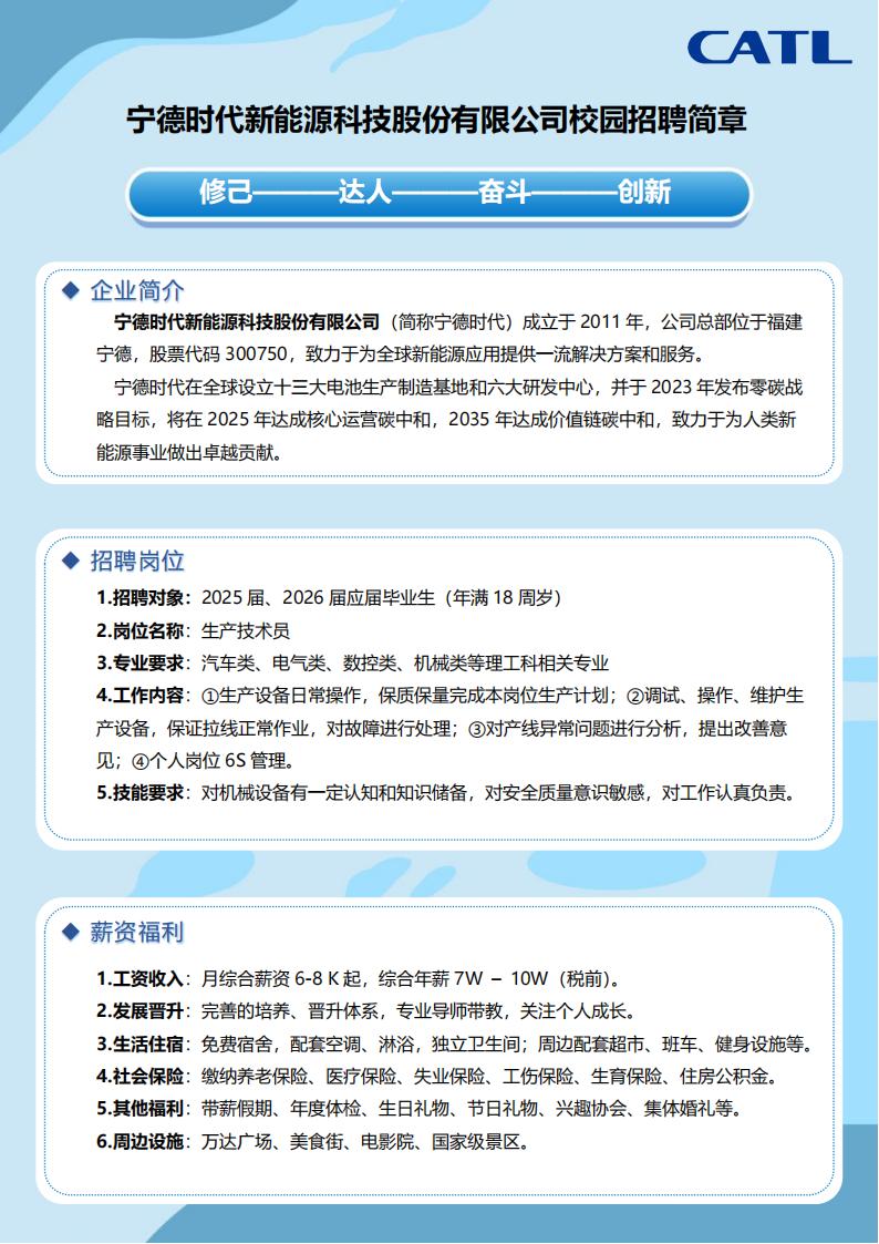 寧德時代新能源科技股份有限公司校園招聘簡章