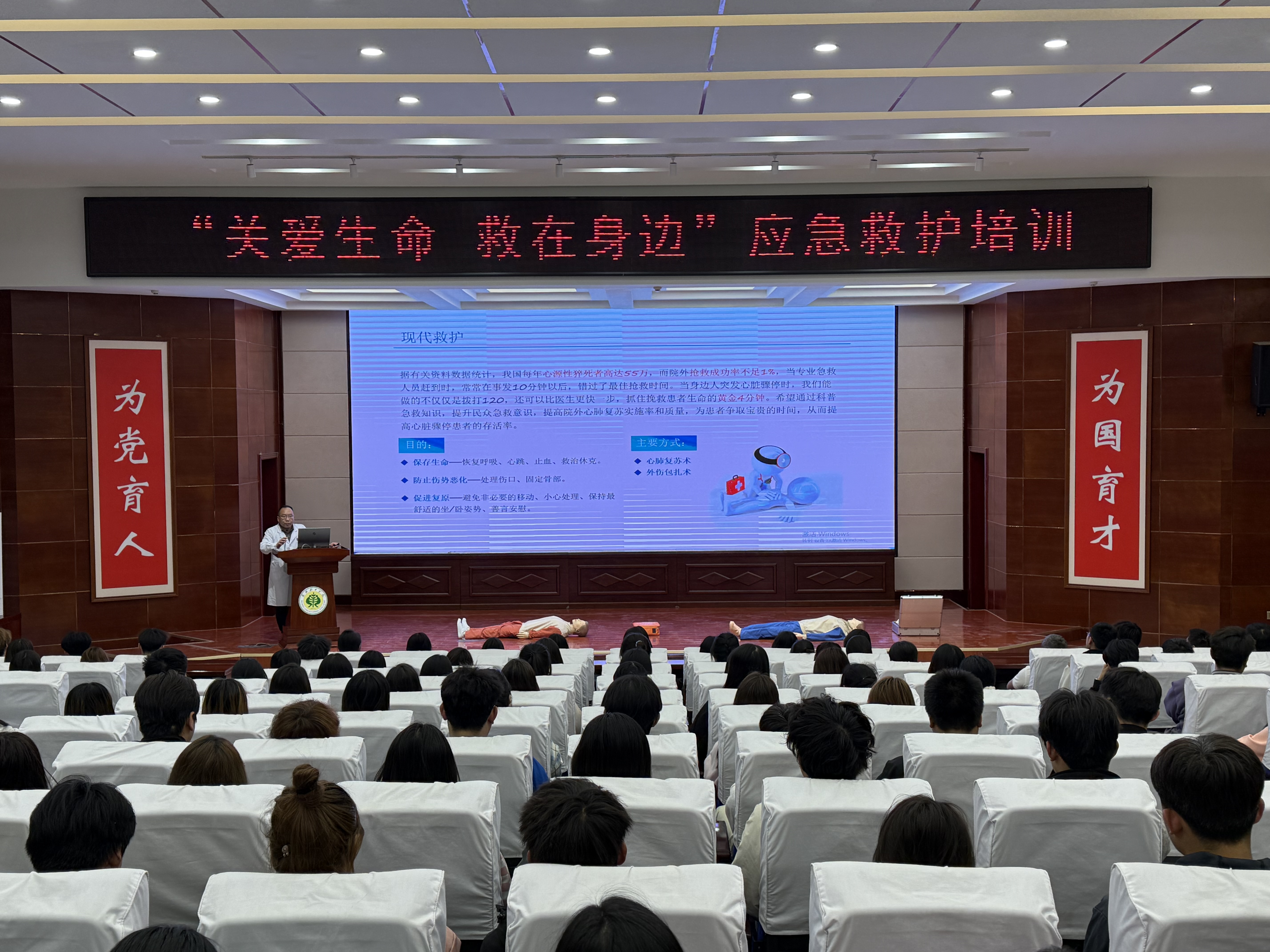 為普及急救知識,提升學生應急救護能力,4月17日下午,校團委聯(lián)合武威市人民醫(yī)院在學校菁英廳舉辦“關愛生命 救在身邊”專題培訓,200余名學生參與學習。活動通過“理論+實操”形式,系統(tǒng)教授學生心肺復蘇、氣道異物急救等技能,助力平安校園建設。