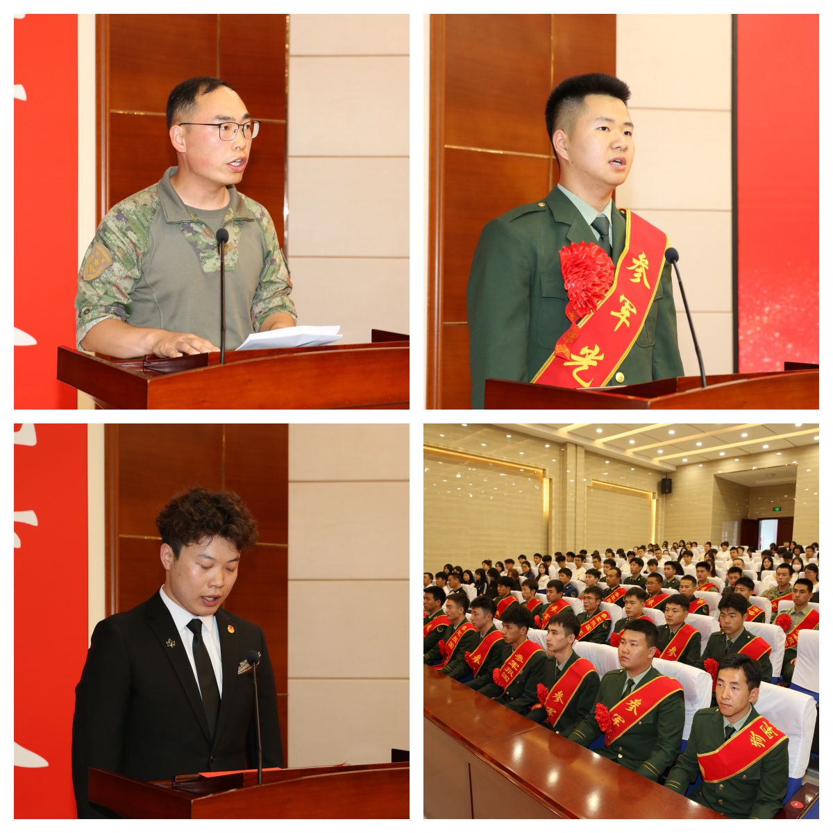 活動(dòng)現(xiàn)場(chǎng)為2024—2025學(xué)年退役復(fù)學(xué)大學(xué)生舉行了歡迎儀式,并為他們頒發(fā)“退役復(fù)學(xué)軍人榮譽(yù)證牌”。退役復(fù)學(xué)大學(xué)生代表、醫(yī)學(xué)技術(shù)學(xué)院2024級(jí)針灸推拿大專(zhuān)(2)班周榮臻同學(xué)講述了軍旅生涯的磨煉和成長(zhǎng)感悟,并號(hào)召青年大學(xué)生積極報(bào)名參軍;2025年應(yīng)征報(bào)名大學(xué)生代表、藥學(xué)院2024級(jí)藥學(xué)大專(zhuān)(1)班劉鑫同學(xué)宣讀了參軍入伍倡議書(shū);駐武部隊(duì)優(yōu)秀大學(xué)生軍官代表符東洋少校分享了自己在部隊(duì)的成長(zhǎng)經(jīng)歷。