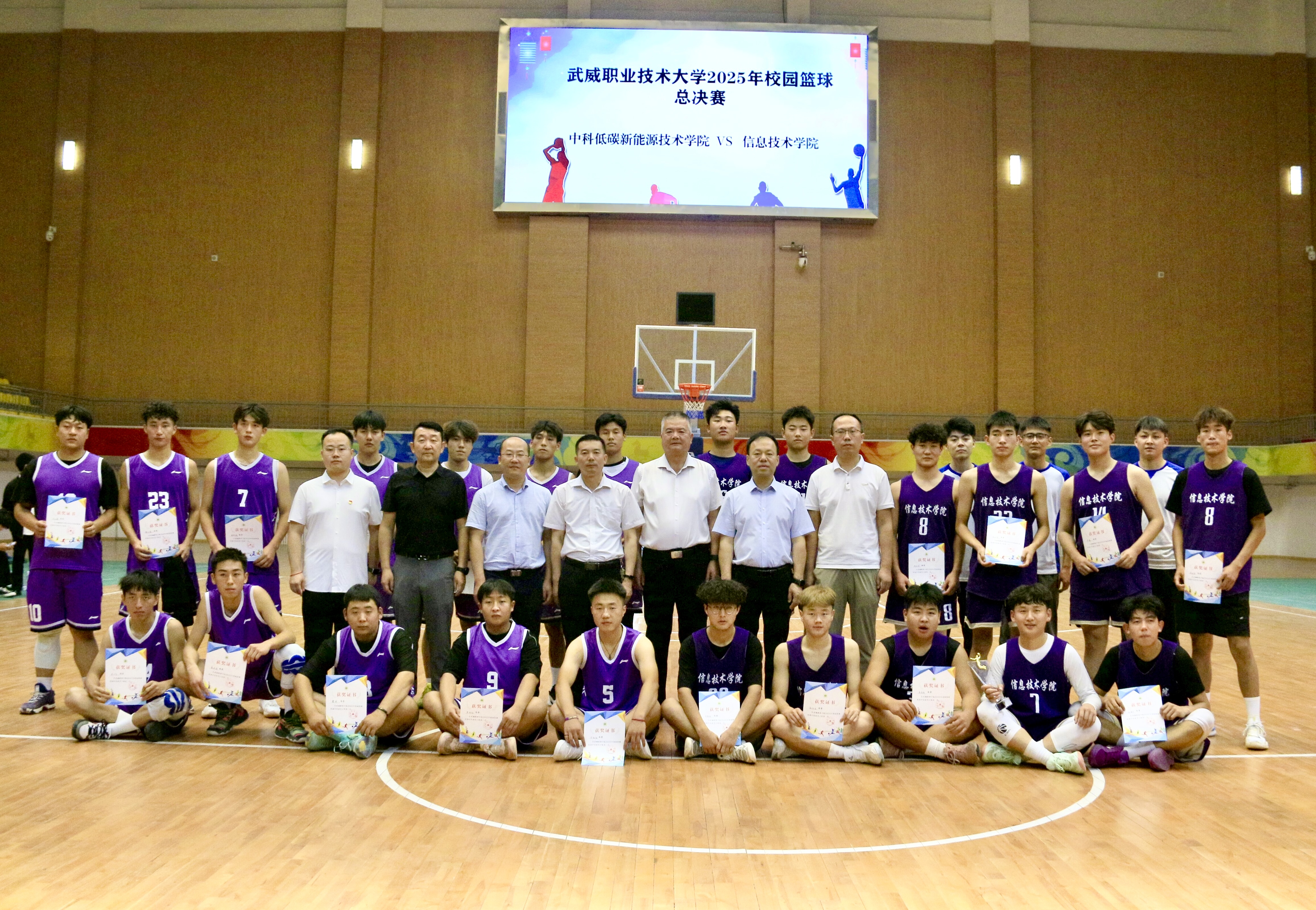 6月26日下午,由學(xué)校體育運(yùn)動委員會主辦,藝術(shù)與教育學(xué)院承辦的2025年校園籃球比賽男子組決賽在體育館舉行。經(jīng)過激烈比拼,信息技術(shù)學(xué)院代表隊(duì)以42:39戰(zhàn)勝中科低碳新能源學(xué)院代表隊(duì),獲得本次籃球比賽男子組冠軍。學(xué)校黨委委員、副校長王守云到場觀看比賽并為獲獎代表隊(duì)頒獎。
