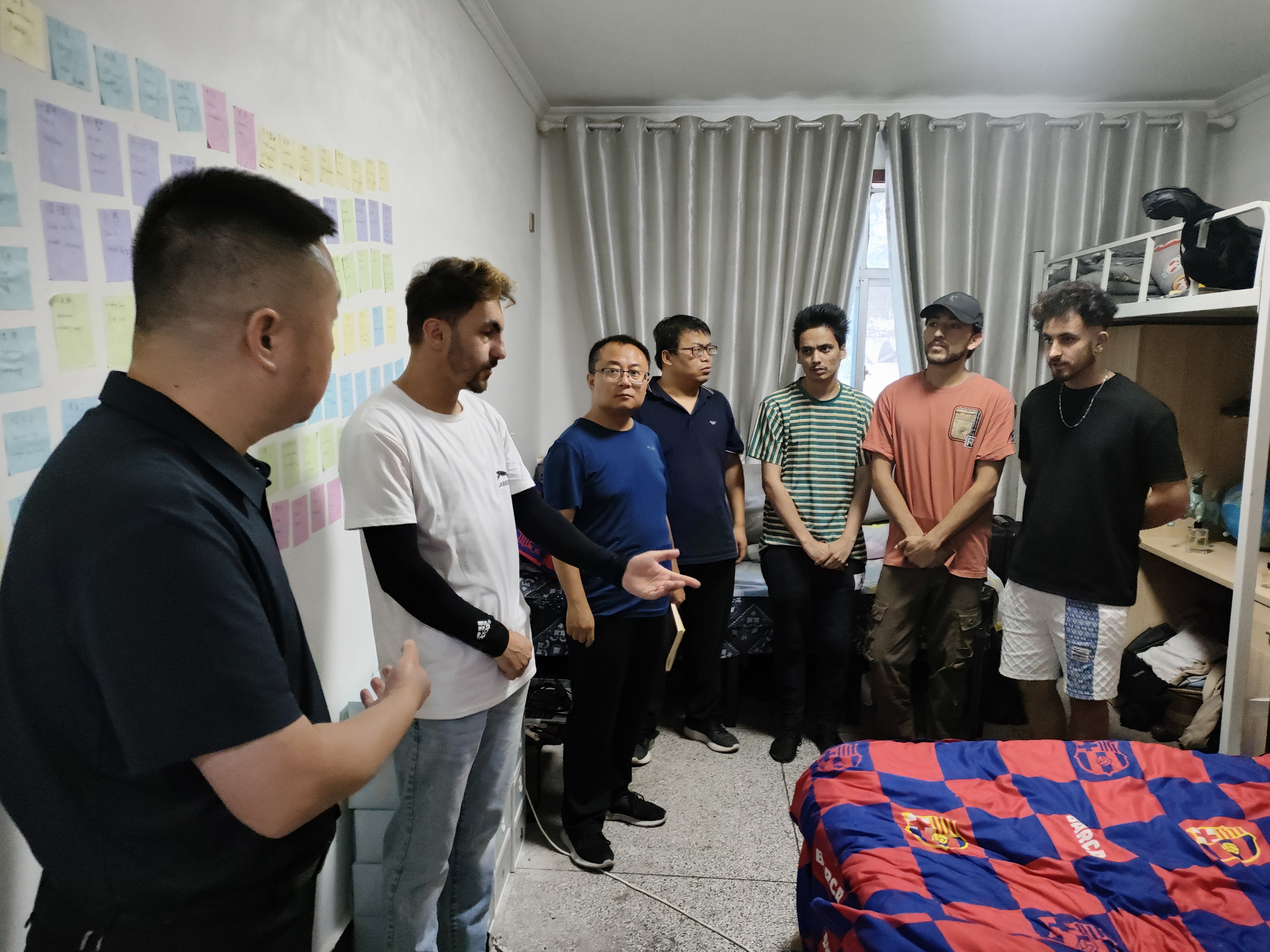 在新學(xué)期開學(xué)之際,國際合作交流處負(fù)責(zé)人帶領(lǐng)部門全體教師深入留學(xué)生宿舍,開展安全衛(wèi)生專項(xiàng)檢查,實(shí)地了解留學(xué)生開學(xué)準(zhǔn)備情況。