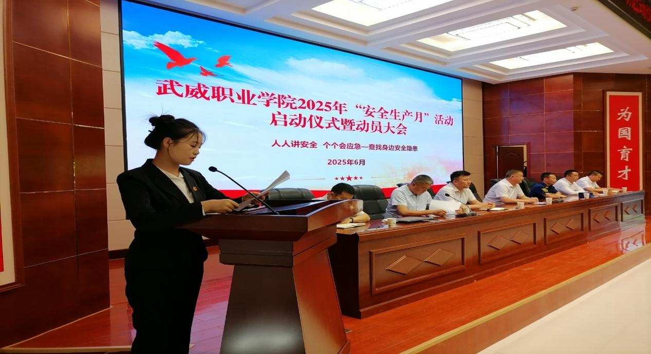 6月16日下午,“安全生產(chǎn)月”啟動(dòng)儀式暨動(dòng)員大會(huì)在學(xué)校菁英廳舉行。學(xué)校黨委委員、副校長王守云作動(dòng)員講話,強(qiáng)調(diào)校園安全是辦學(xué)治校的生命線,要求全校師生以高度的責(zé)任感積極參與各項(xiàng)活動(dòng),將安全理念內(nèi)化于心、外化于行。安全保衛(wèi)處處長李欣對(duì)活動(dòng)作了詳細(xì)安排。學(xué)生代表王盼發(fā)出倡議,號(hào)召同學(xué)們自覺學(xué)習(xí)安全知識(shí)、遵守安全規(guī)范、擔(dān)當(dāng)安全責(zé)任。最后,師生代表在印有活動(dòng)主題的承諾墻上鄭重簽名,表達(dá)踐行安全的堅(jiān)定決心。