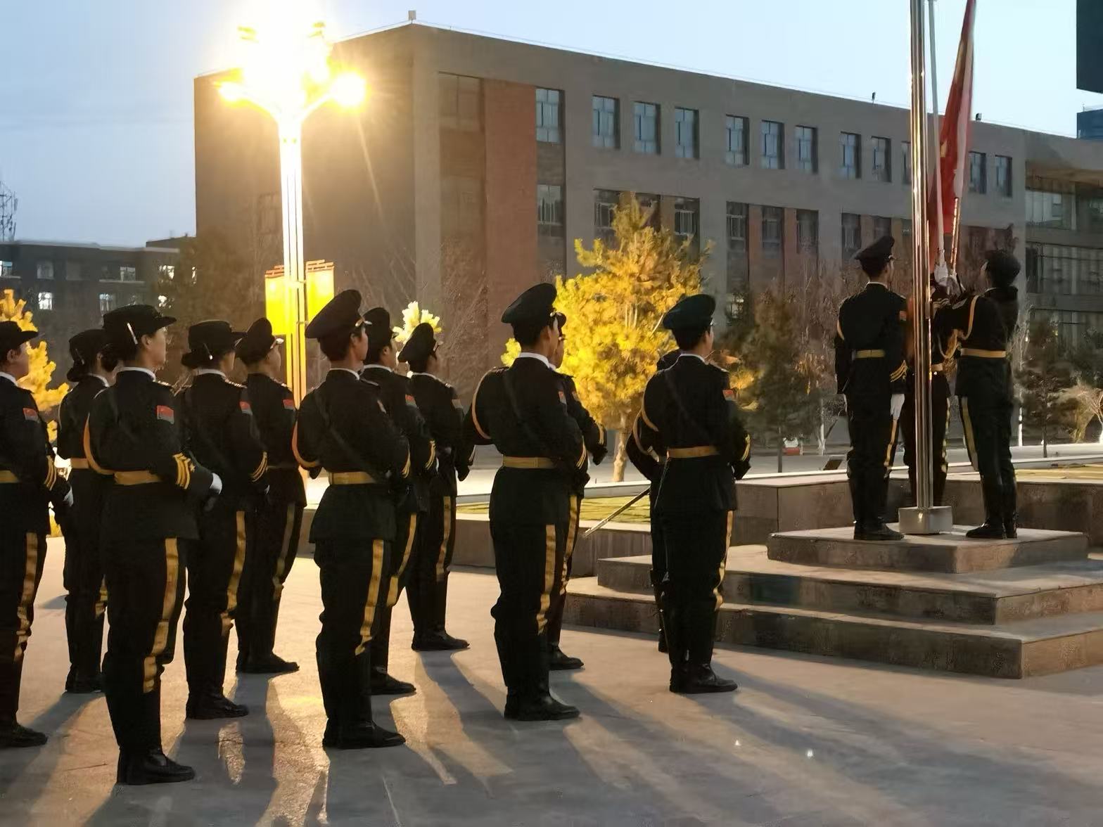 全體學(xué)生整齊列隊(duì),伴隨著莊嚴(yán)的國(guó)歌,注視著國(guó)旗護(hù)衛(wèi)隊(duì)護(hù)送五星紅旗冉冉升起,展現(xiàn)了學(xué)院學(xué)子昂揚(yáng)向上的精神風(fēng)貌。