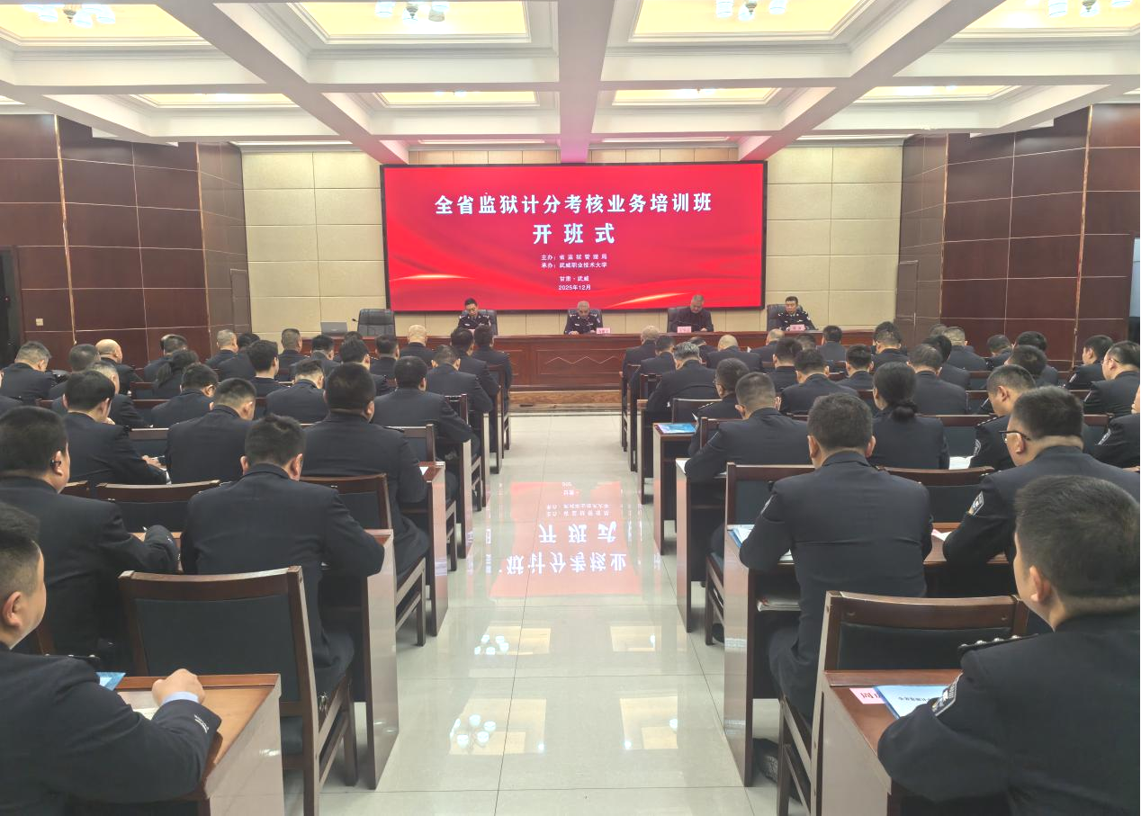 12月9日,由甘肅省監(jiān)獄管理局主辦、武威職業(yè)技術(shù)大學(xué)承辦的全省監(jiān)獄系統(tǒng)計(jì)分考核業(yè)務(wù)培訓(xùn)班在武威職業(yè)技術(shù)大學(xué)行樹樓北側(cè)報(bào)告廳順利開班。省監(jiān)獄管理局獄政處處長萬鵬宇,學(xué)校黨委委員、副校長王守云,武威監(jiān)獄政委陳源出席開班式,全省各監(jiān)獄系統(tǒng)93名參訓(xùn)干部參加培訓(xùn)。省監(jiān)獄管理局獄政處四級(jí)調(diào)研員李剛軍主持開班儀式。