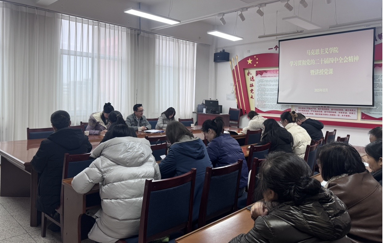 為推動黨的二十屆四中全會精神在學院落地生根,進一步統(tǒng)一思想、凝聚共識、激發(fā)干勁,12月31日,馬克思主義學院開展深入學習貫徹黨的二十屆四中全會精神專題學習活動,學院黨總支書記任陶在勵勤樓209會議室講授專題黨課,全體教師參加。