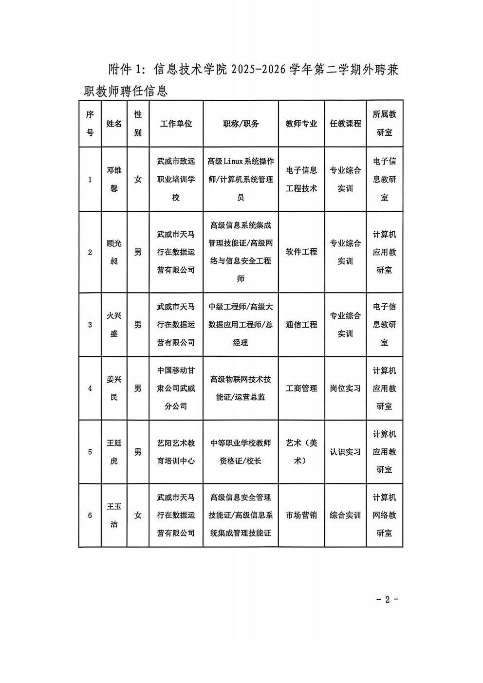 關(guān)于信息技術(shù)學(xué)院2025-2026學(xué)年第2學(xué)期企業(yè)兼職教師聘用結(jié)果的公示