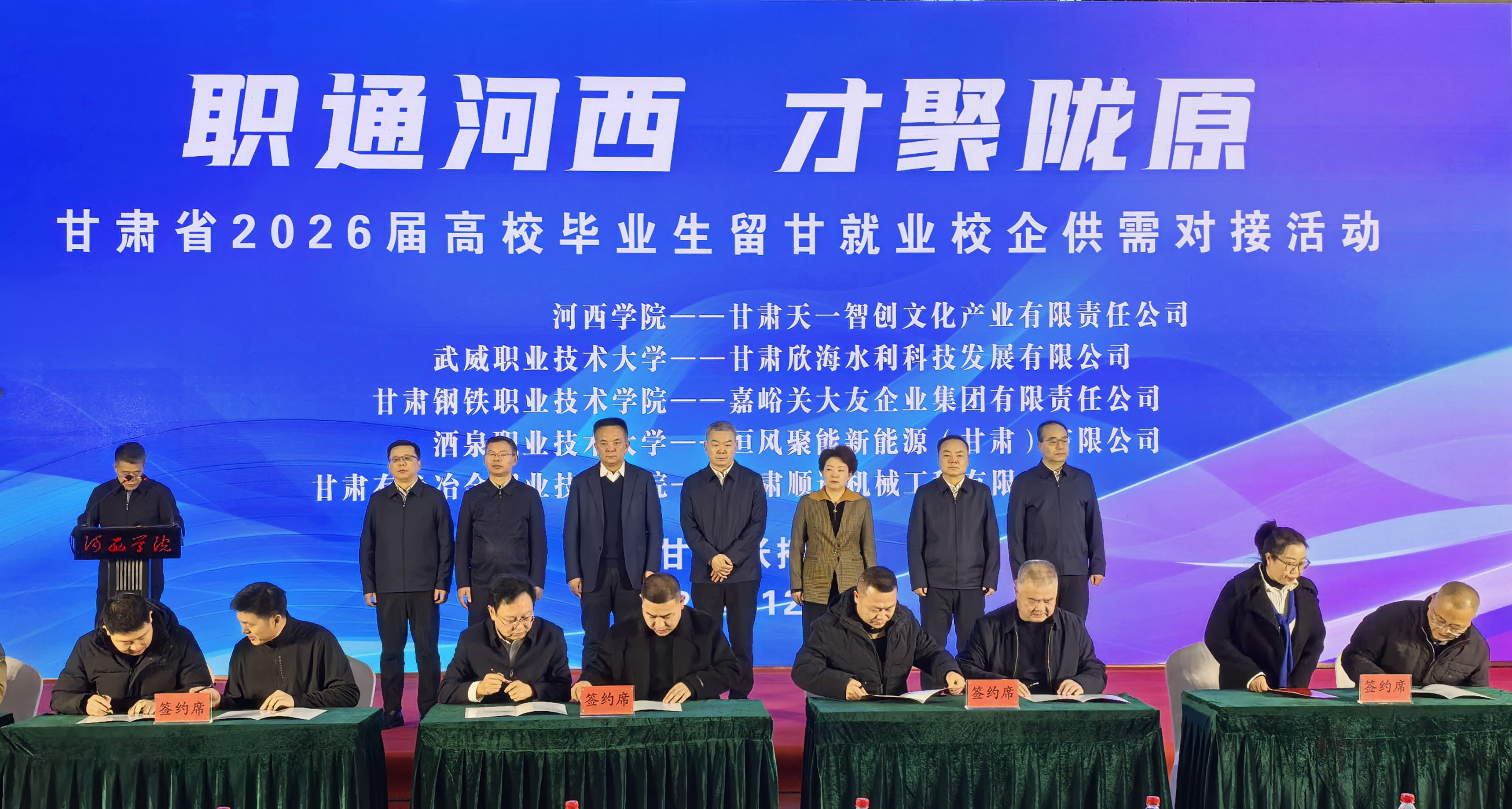 在供需對接活動現(xiàn)場,學校圍繞協(xié)議內容,涵蓋人才培養(yǎng)、實習就業(yè)基地建設、技術咨詢、培訓服務等方面內容,與甘肅欣海水利科技發(fā)展有限公司簽訂校企就業(yè)合作協(xié)議,推進企業(yè)深度參與育人全過程,促進人才供給與產(chǎn)業(yè)需求精準對接,推動更多畢業(yè)生留甘就業(yè)。