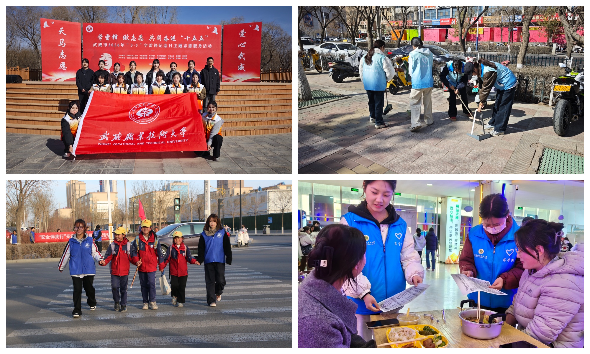 活動當(dāng)天,志愿者們走出校園,在武威市3·5學(xué)雷鋒紀念日主題志愿服務(wù)活動現(xiàn)場為群眾提供講解、引導(dǎo)等服務(wù)。在校園周邊街道,志愿者們對人行道、綠化帶進行細致清理,以實際行動維護環(huán)境整潔;同時通過開展垃圾分類宣傳、“無煙校園”倡導(dǎo)等活動,引導(dǎo)師生樹立環(huán)保理念,踐行綠色低碳生活方式。在各小學(xué)周邊路口、校門口等關(guān)鍵位置,志愿者們引導(dǎo)小朋友安全過馬路、有序離校,為小朋友們筑牢出行“安全防線”。在網(wǎng)絡(luò)安全宣傳點,志愿者們通過案例分析、互動問答等形式,普及防范網(wǎng)絡(luò)詐騙、保護個人信息等知識,引導(dǎo)師生文明上網(wǎng)、安全用網(wǎng)。此外,還通過設(shè)立宣傳點、發(fā)放倡議書、開展健康知識普及等方式,向師生傳遞科學(xué)運動、合理膳食等健康理念,倡導(dǎo)養(yǎng)成文明健康的生活習(xí)慣,讓文明新風(fēng)吹遍校園每個角落。