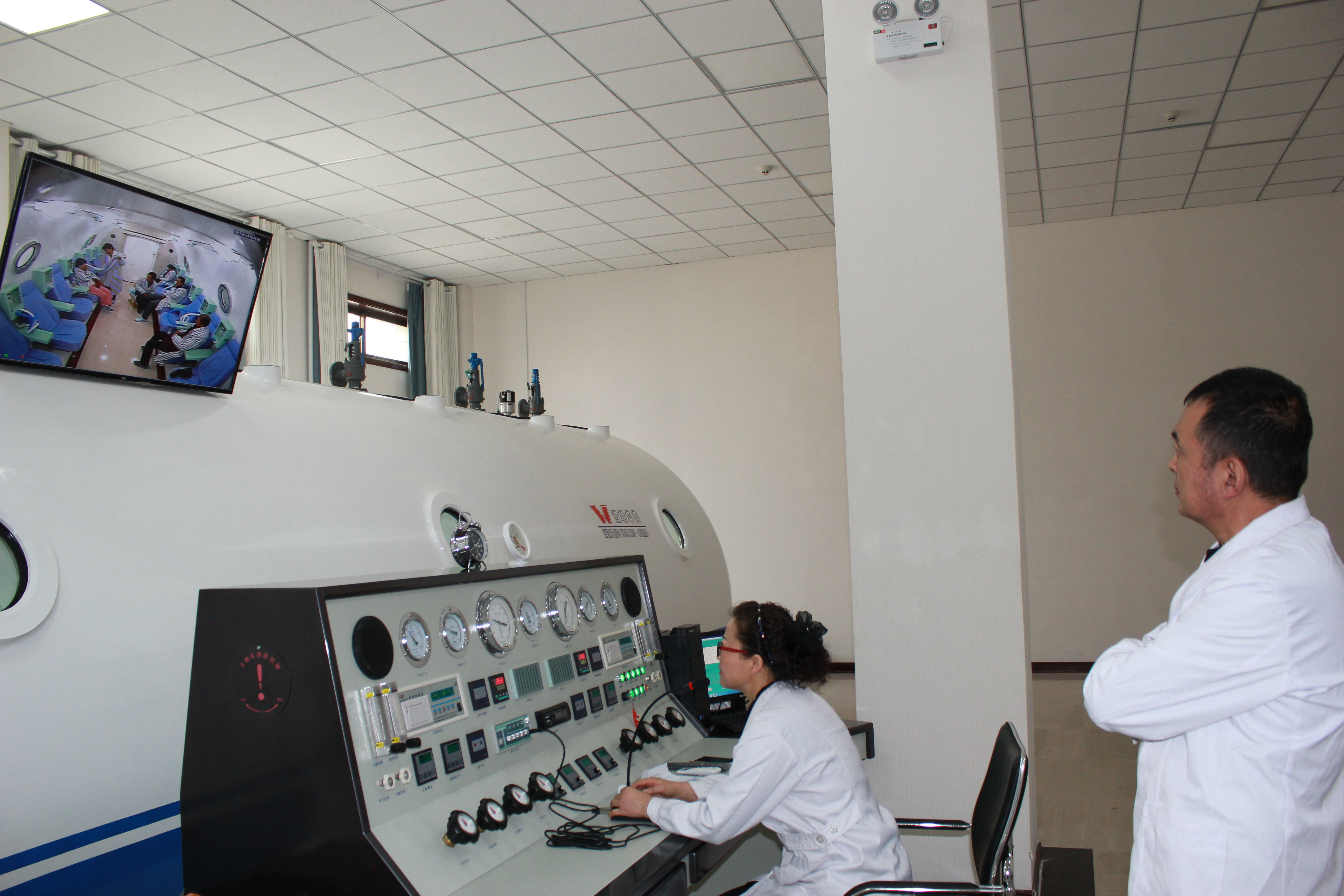 高壓氧艙一次可容納16人同時(shí)治療。氧艙配有微機(jī)操艙系統(tǒng)、有先進(jìn)的電子監(jiān)視器、對(duì)講系統(tǒng)及靈敏的測(cè)氧儀,可嚴(yán)密觀察艙內(nèi)人員情況,提高了治療的安全性。